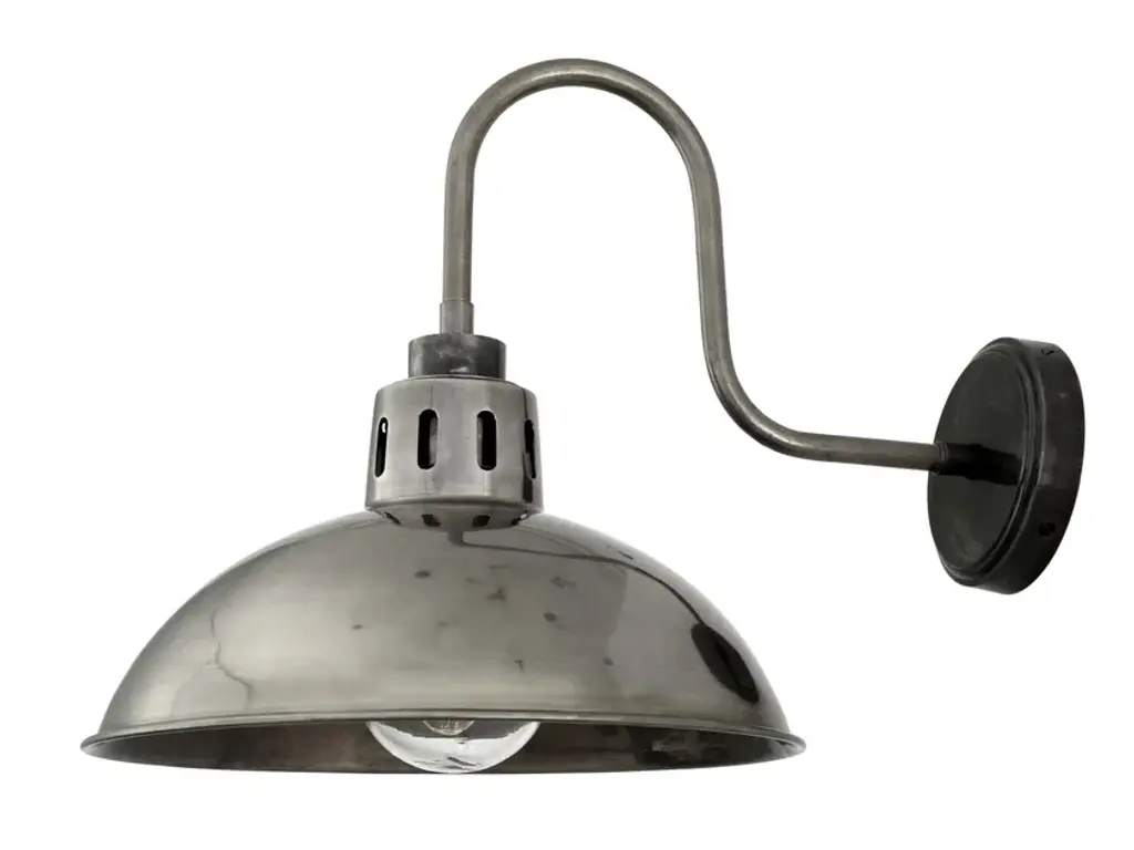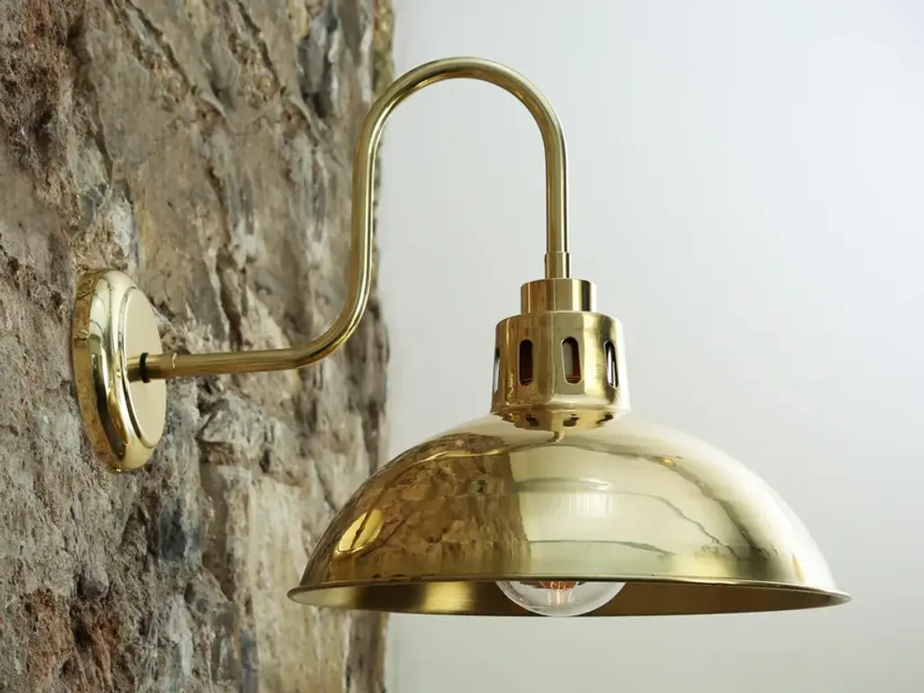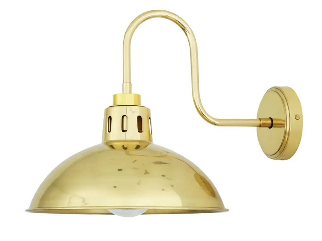 Talise swan neck wall light, factory-style Material Brass | Steel | GlassProjection 42cm | 16.50”Weight 1.460kgMax Wattage 6.5w LEDVoltage 220/240vLampholder E27 | Plastic | ES | Edison ScrewIP Rating IP54Glass Code GLWP01Protection Class Class II