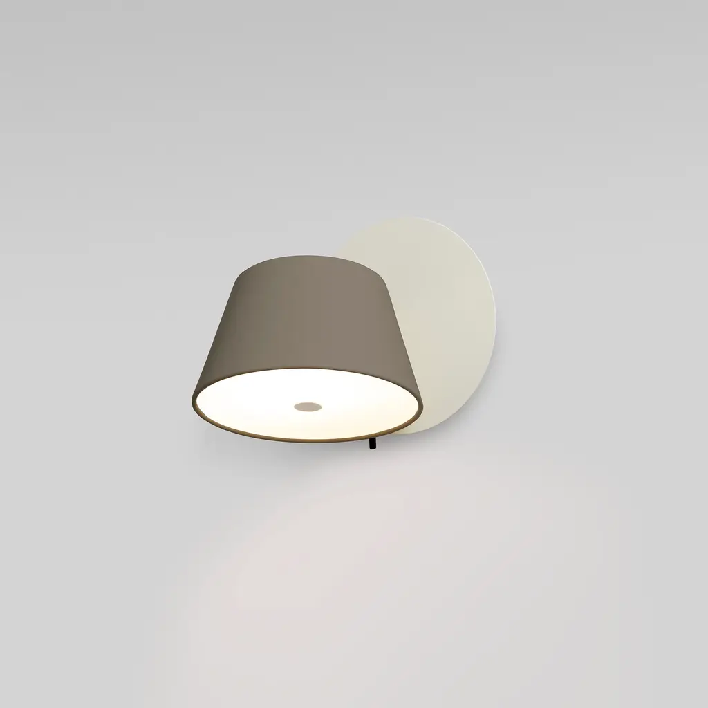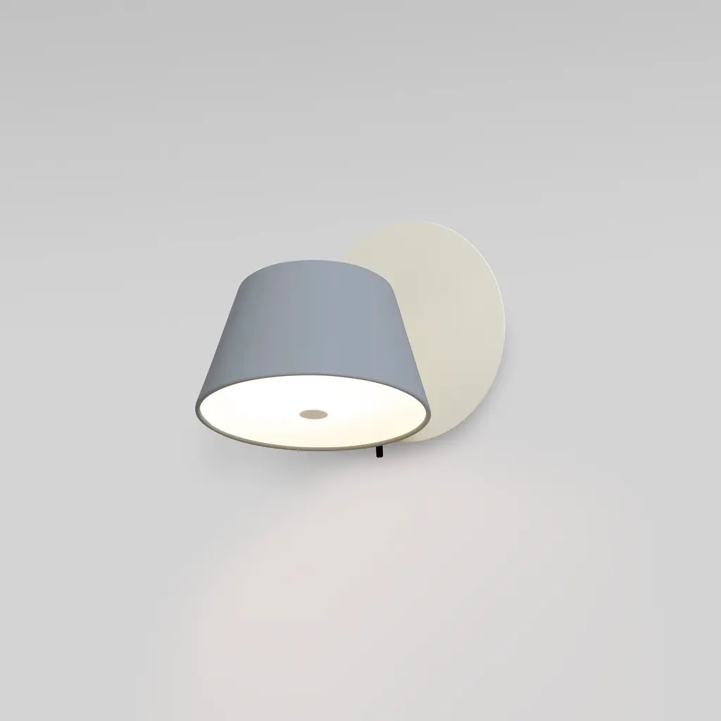 Also throwing a little shade—the Tam Tam A. This wall mounted single-shade fixture complements the eye-catching cluster pendant from Barcelona-based Marset and Berlin designer Fabien Dumas. In a choice of colors set on a white base plate, the shade can be rotated 360 degrees. Aim it downward, sideways or upward to reflect off the ceiling. Shade made of lacquered aluminum with an opalescent methacrylate diffuser over the open end to soften the light.