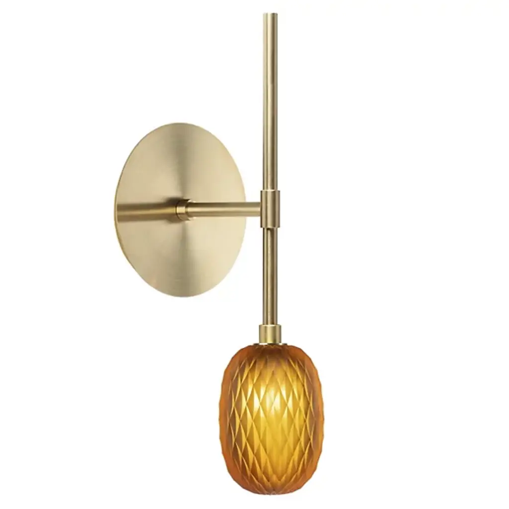 Stunning and stylish. The Tamar Saber Wall Sconce is presented by Shakuff and features an intricately textured blown glass shade in a vertical cylindrical silhouette. It drops down from a circular mounting plate and stem. Light diffuses through the ridges of the glass to provide a visually stimulating brightening experience, casting ambient light in all directions and bouncing against the wall. Made in the USA, the Tamar Saber Wall Sconce is capable of energy-efficient LED illumination, and the decorative trim is finished luxuriously. It’s a great piece to place alone or in multiples based on personal style and preference.