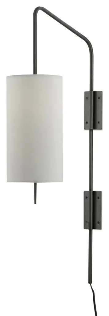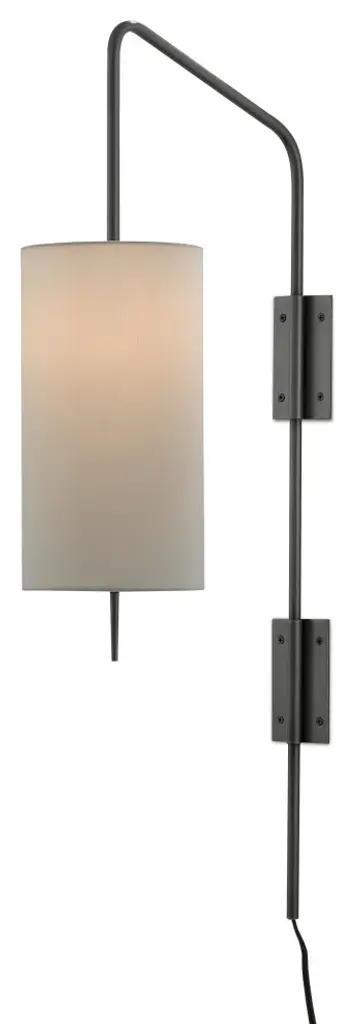 Proving that an industrial chic appearance doesn''t equal dowdy, our Tasmin Wall Sconce has an articulated armature that cuts a striking pose. Made of metal in an oil-rubbed bronze finish, the angle of the arm that holds the bulb, the shape of the finial and the way the off-white shantung shade cleanly joins the two makes this sconce a striking choice for a discerning design devotee.Bulb Type: A StandardNumber of Bulbs: 1Bulbs Included: NoUL Listed: NoBulb Wattage: 60Hardwire or Plug: Hardwire
