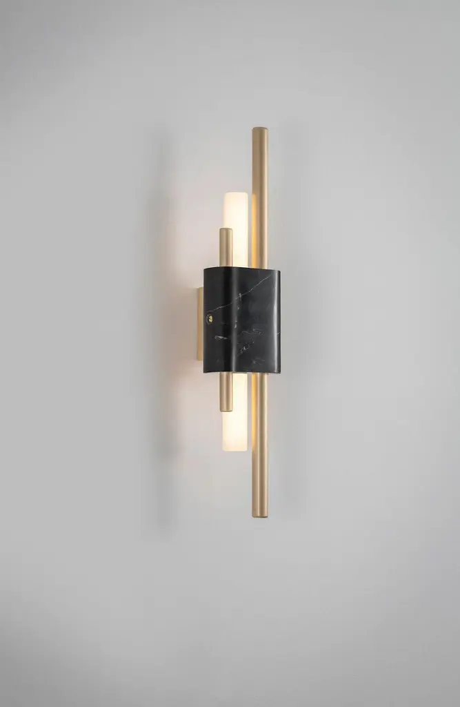 Tanto wall light, double, white marble by Bert FrankDimensions: 15 x 9 x H 65 cmMaterials: brushed brass, white carrara marbleWhen Adam Yeats and Robbie Llewellyn founded Bert Frank in 2013 it was a meeting of minds and the start of a collaborative creative partnership with engineering at the core.Both men share a love of design and deep respect for the heritage of British engineering. Both wanted to create high-end products that would Stand the test of time and fly in the face of throwaway consumerism. The partnership has resulted in award-winning lighting and accessories that fuse the integrity of the small-scale workshop with timeless aesthetics reimagined for today.The two men work closely together from concept to end product. Robbie’s imagination and occasional flights of fancy are informed by Adam’s understanding of engineering principles and fabrication techniques. Equally, Adam's designs are often the starting point for a collection. In that sense Bert Frank is a true creative collaboration. As a result, every designed is honed to perfection, every detail carefully considered.