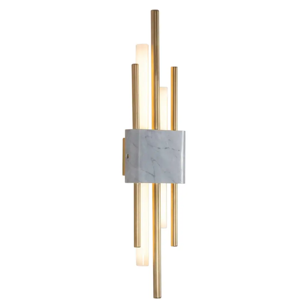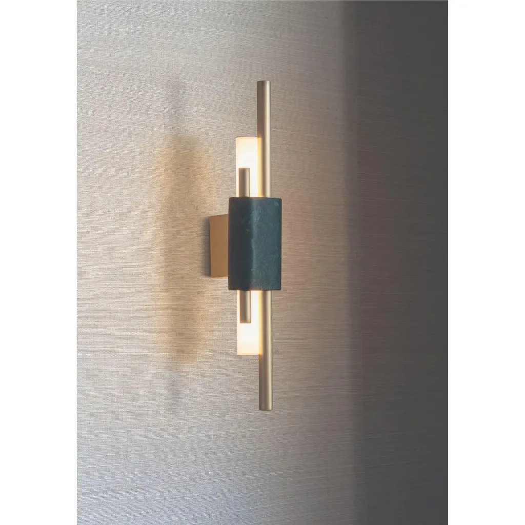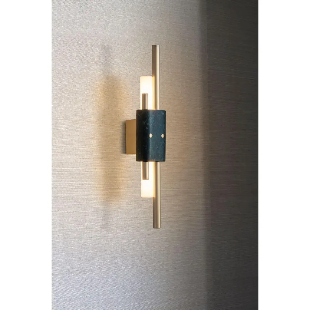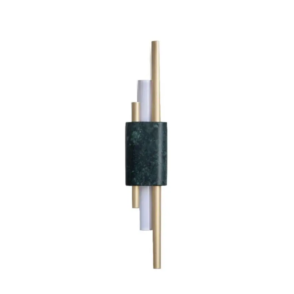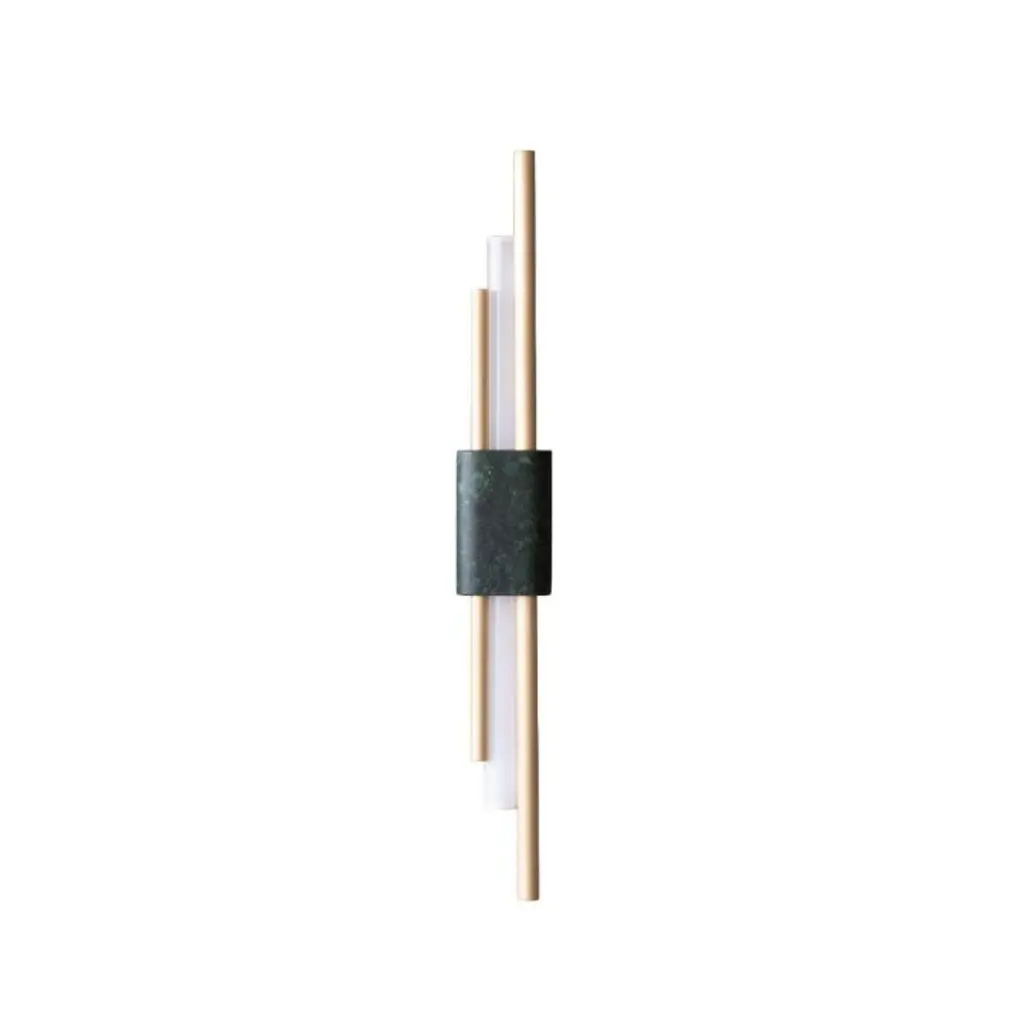 Tanto wall light - Small - Green by Bert FrankDimensions: 45 x 9 x 9 cmMaterials: Brushed brass, green guatemala marbleWhen Adam Yeats and Robbie Llewellyn founded Bert Frank in 2013 it was a meeting of minds and the start of a collaborative creative partnership with engineering at the core.Both men share a love of design and deep respect for the heritage of British engineering. Both wanted to create high-end products that would Stand the test of time and fly in the face of throwaway consumerism. The partnership has resulted in award-winning lighting and accessories that fuse the integrity of the small-scale workshop with timeless aesthetics reimagined for today.The two men work closely together from concept to end product. Robbie’s imagination and occasional flights of fancy are informed by Adam’s understanding of engineering principles and fabrication techniques. Equally, Adam's designs are often the starting point for a collection. In that sense Bert Frank is a true creative collaboration. As a result, every designed is honed to perfection, every detail carefully considered.