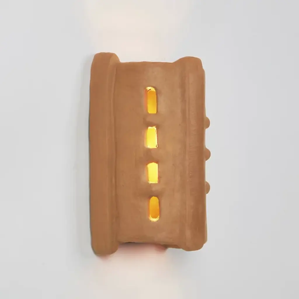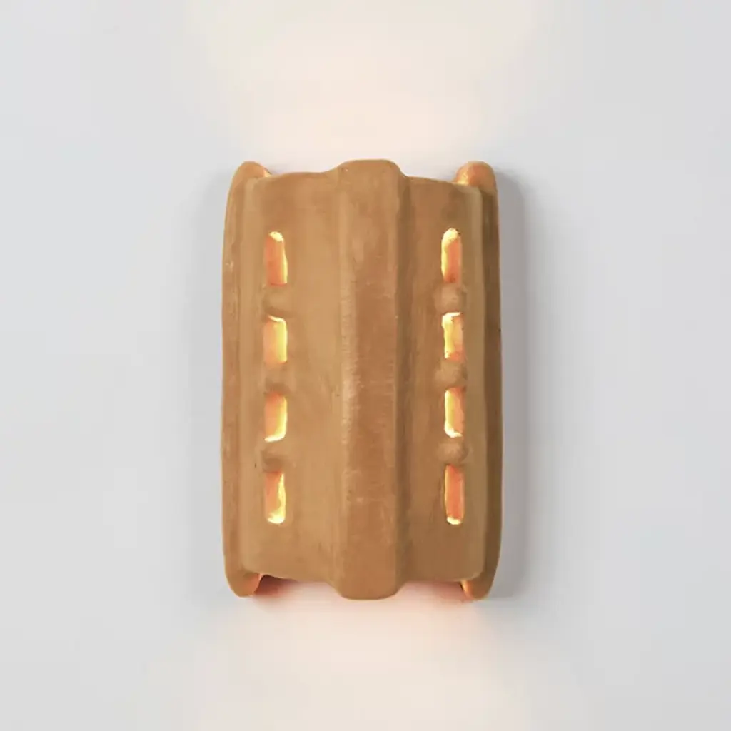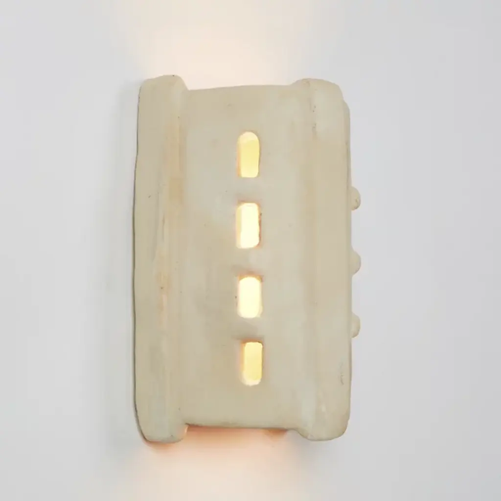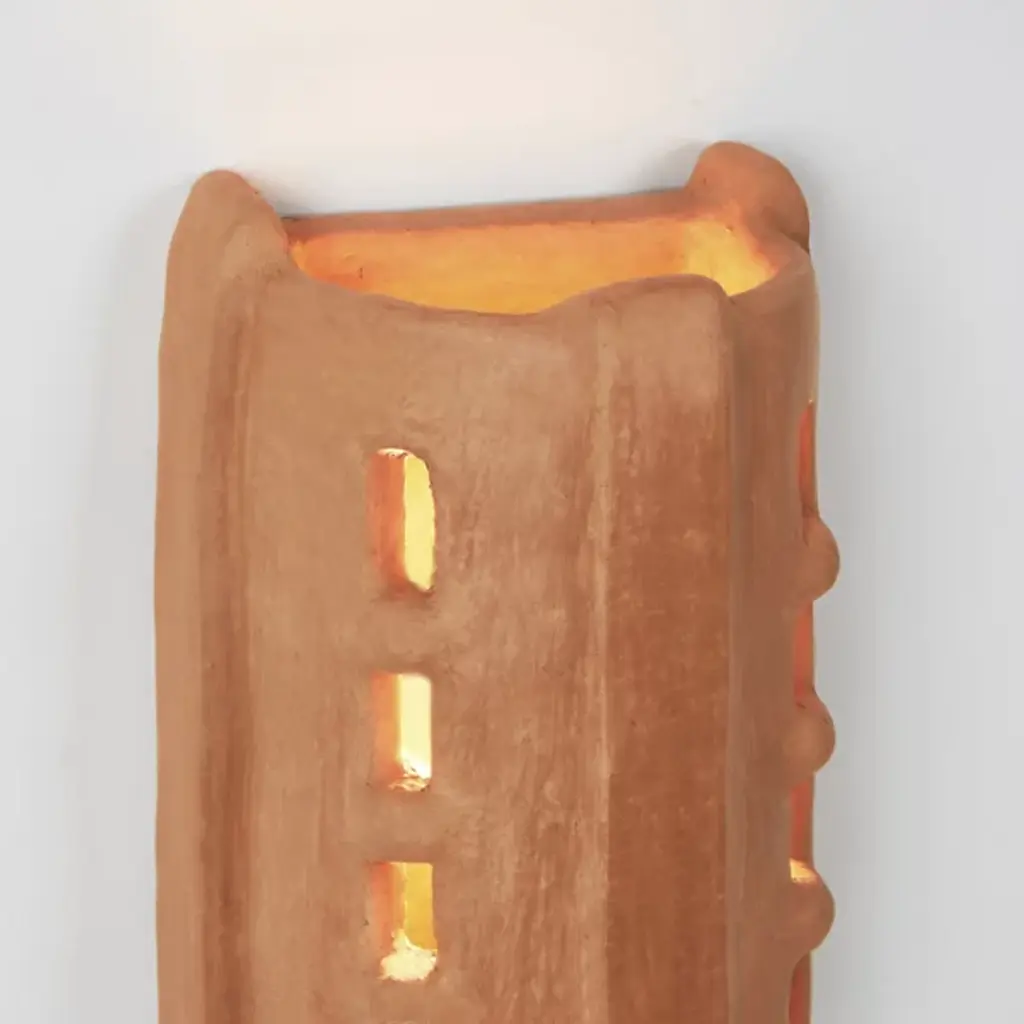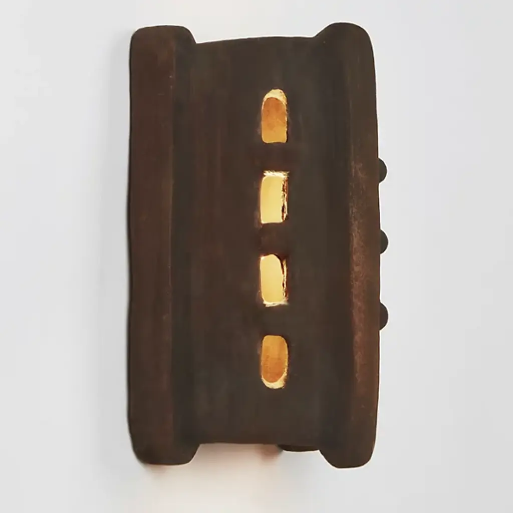 The Taqa LED Wall Sconce from Roll & Hill brings the exotic air of the Moroccan Rif Mountains to enhance your walls. A considered collaboration between the French Memòri Studio and experienced master potter Houda El Oman, they keep tradition alive by employing female pottery artisans to handmake each triangular sconce housing. Three vertical buffers confine small windows in inset sections, allowing limited beams of light to the sides, while an open top and bottom pour out a generous vertical wall wash above and below.