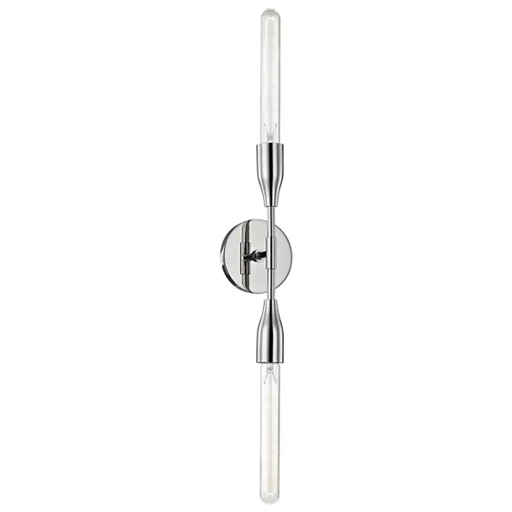 The Tara 2-Light Wall Sconce by Mitzi combines a sleek, minimalist design with contemporary up and downlight illumination. Crafted from Metal, this fixture uses 2 long T10 light bulbs to bring soft lighting to an entry, hallway, bedroom or living room. Simplicity can be beautiful and when used in pairs, this contemporary lighting plays a decorative role highlighting a piece of artwork, gallery wall or large mirror.