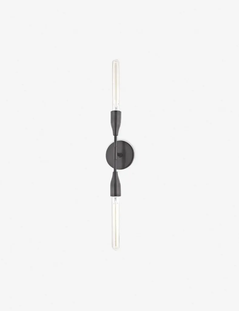 No shades needed as tube bulbs perform double duty and seamlessly extend from the sleek, straight arms of this contemporary wall sconce. Bring the right light to your space with one, two or four-bulb options. Available in 3 finishes: Aged Brass, Old Bronze and Polished Nickel.