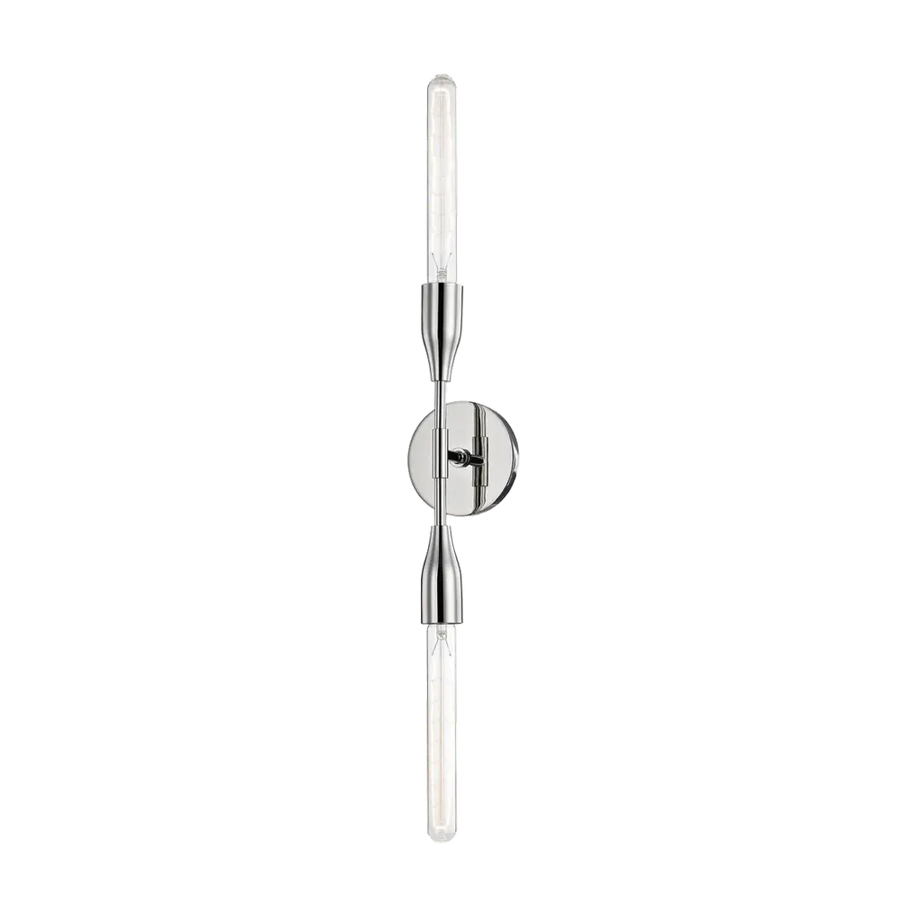 No shades needed as tube bulbs perform double duty and seamlessly extend from the sleek, straight arms of this contemporary wall sconce. Bring the right light to your space with one, two or four-bulb options. Available in 3 finishes: Aged Brass, Old Bronze and Polished Nickel.