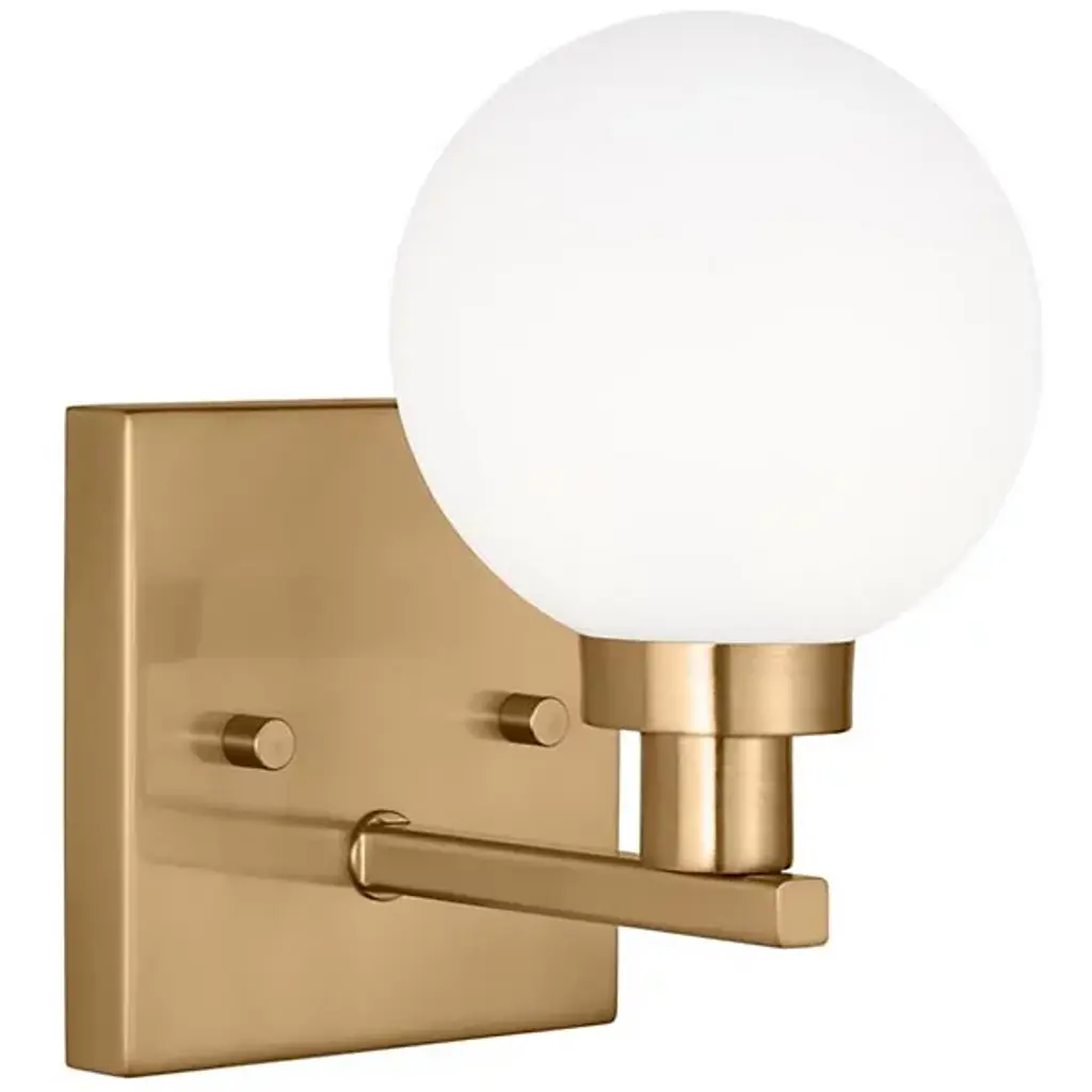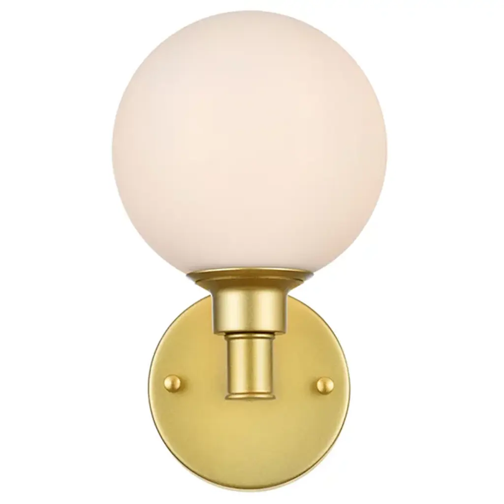 Add ambiance to bathroom spaces with the Tasha Bath Sconce from Alder & Ore. Crafted from durable iron and damp-listed for optimal functionality, this transitional fixture elegantly extends strong lamping from a circular wall plate, secured by a slender central crossbar. The stepped socket housing offsets the spherical light shade, made from frosted glass to cut bright glare and broadcast an elegant warmth around the fixture. This sconce combines thoughtful design with practical features, adding elegance to its surroundings.