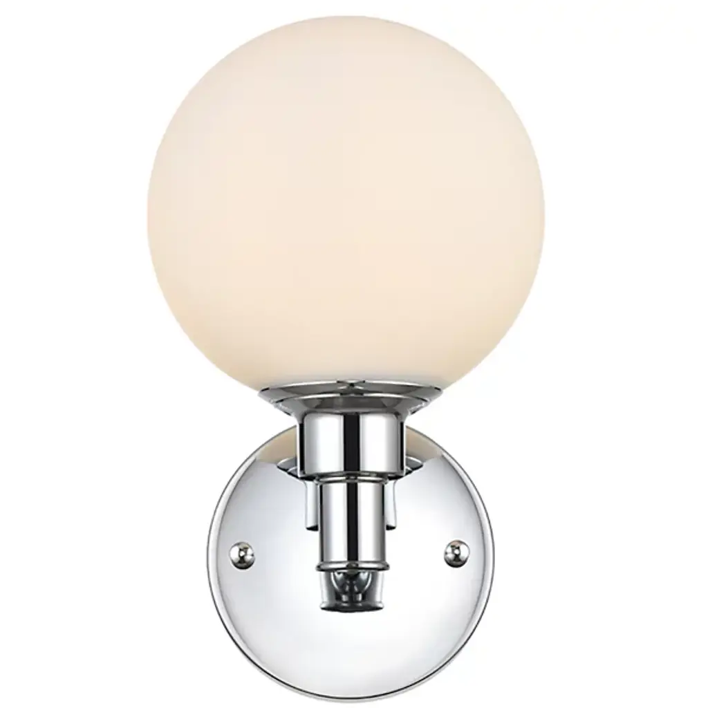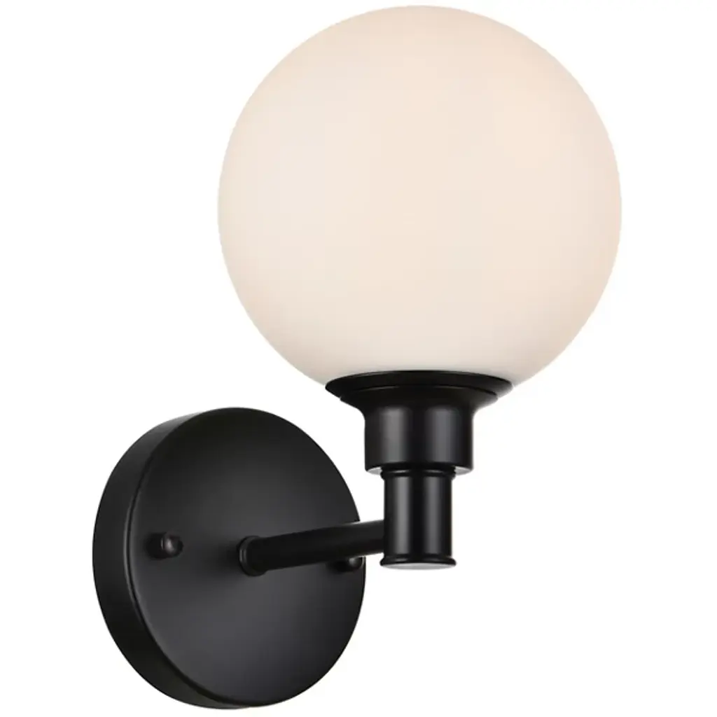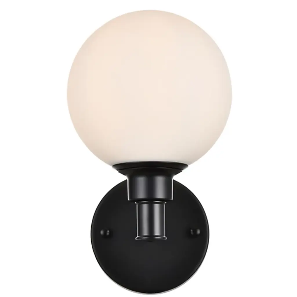 Add ambiance to bathroom spaces with the Tasha Bath Sconce from Alder & Ore. Crafted from durable iron and damp-listed for optimal functionality, this transitional fixture elegantly extends strong lamping from a circular wall plate, secured by a slender central crossbar. The stepped socket housing offsets the spherical light shade, made from frosted glass to cut bright glare and broadcast an elegant warmth around the fixture. This sconce combines thoughtful design with practical features, adding elegance to its surroundings.