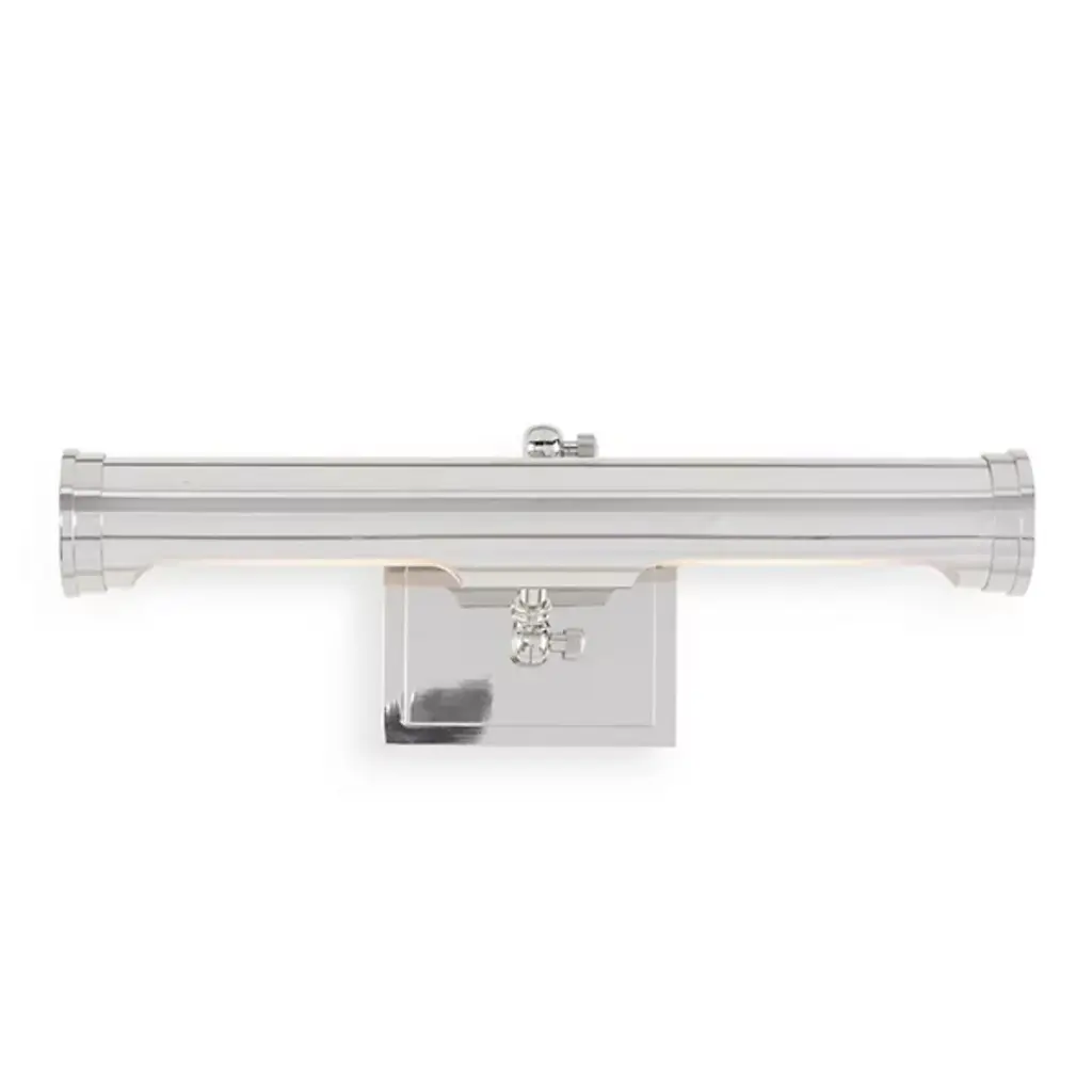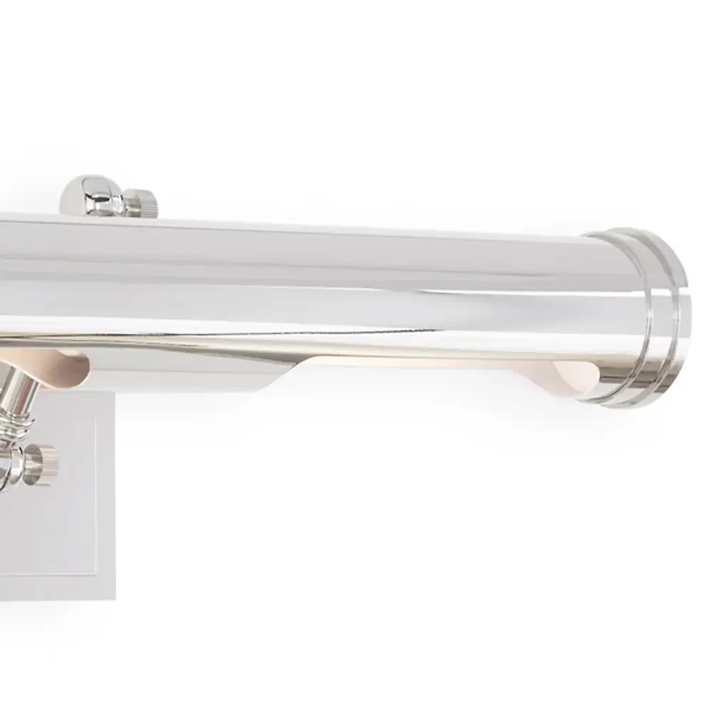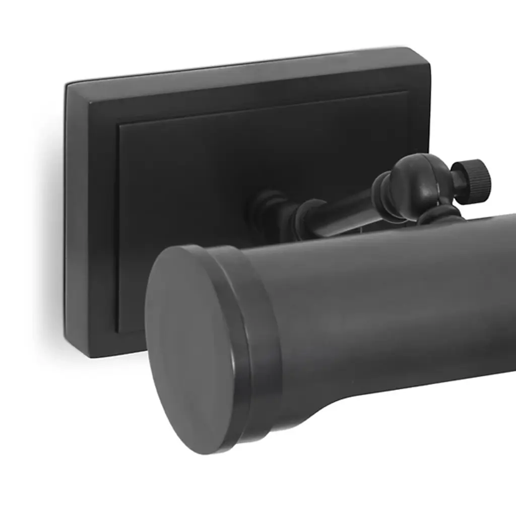 The Tate Picture Small Wall Sconce from Regina Andrew illuminates artwork with a timeless, classical style. An intriguing metal offering that juxtaposes clean lines with elements of fine detail, it expresses a friendly modernity while still offering a touch of tradition. The fixture is held in place by a stepped, rectangular wall plate extending a short, adjustable arm to strong lamping set into a cylinder shade housing that is capped at each end and able to truly put a spotlight on talent.