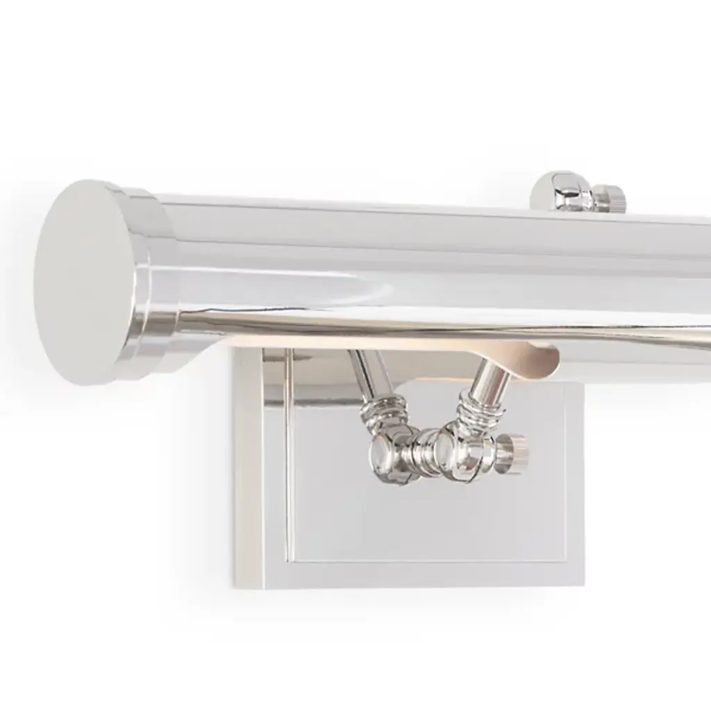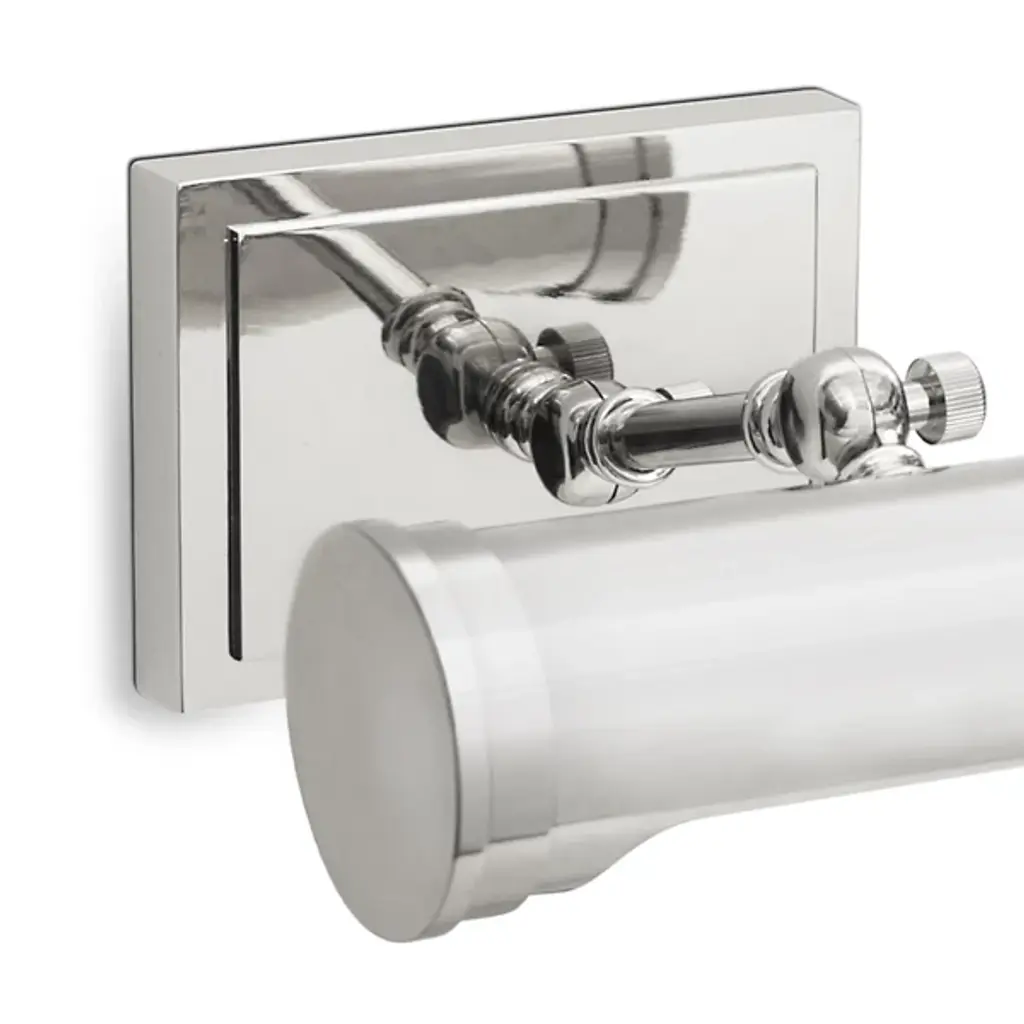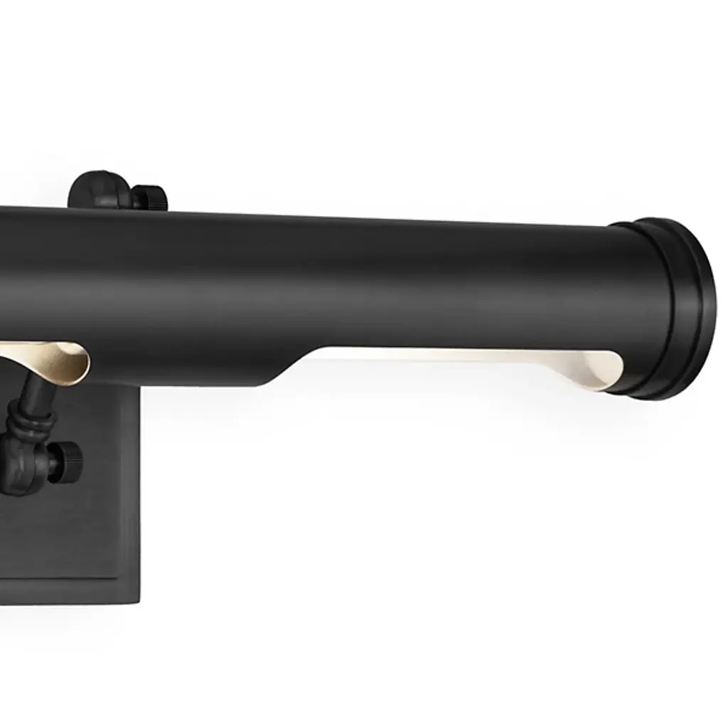 The Tate Picture Small Wall Sconce from Regina Andrew illuminates artwork with a timeless, classical style. An intriguing metal offering that juxtaposes clean lines with elements of fine detail, it expresses a friendly modernity while still offering a touch of tradition. The fixture is held in place by a stepped, rectangular wall plate extending a short, adjustable arm to strong lamping set into a cylinder shade housing that is capped at each end and able to truly put a spotlight on talent.
