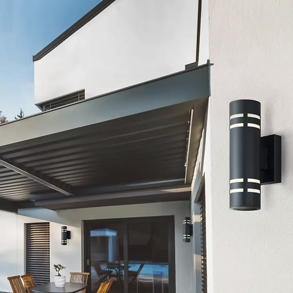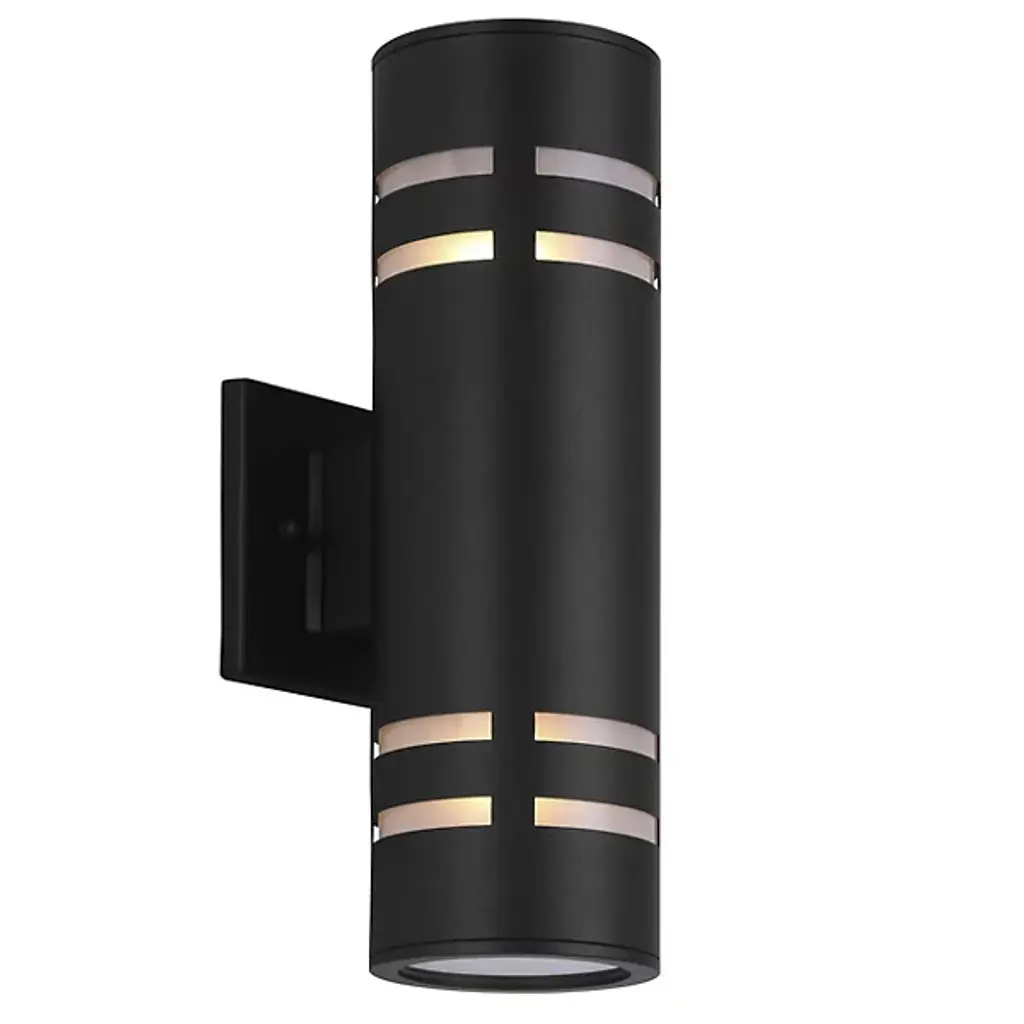 The Tay Outdoor Wall Sconce from Canarm cuts horizontal slits into a cylindrical housing, allowing light to escape in precise architectural patterns. Two light sources within the fixture project illumination outward through these carefully placed apertures, creating rhythmic bands on nearby surfaces. The wall sconce's composed proportions ensure it remains noticeable without overwhelming exterior wall space. Precision-cut diffusers behind each opening soften the light output while maintaining directionality. This piece enhances entryways, porches, and patios with its dramatic play between solid form and released light.