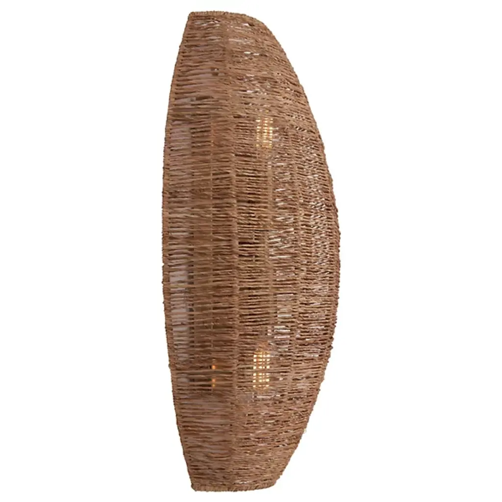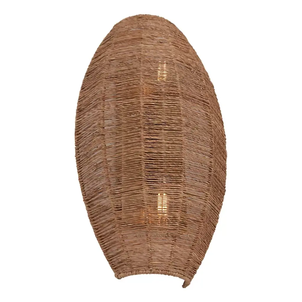 The Teague Wall Sconce from Wildwood attaches to your wall with a gently curved rattan shade that directs light both upward and downward. The handwoven natural fibers create texture against smooth wall surfaces, while the curved design adds dimensional interest. This wall-mounted fixture saves valuable surface space on tables and nightstands. The rattan construction filters light through its woven structure, creating a gentle glow rather than harsh direct illumination. Its organic materials and curved form work together to soften the architectural lines of your room.