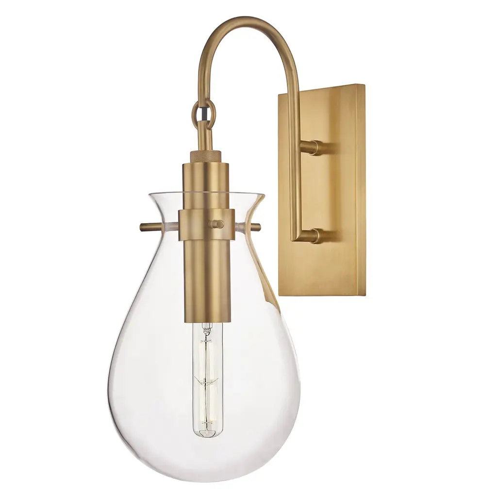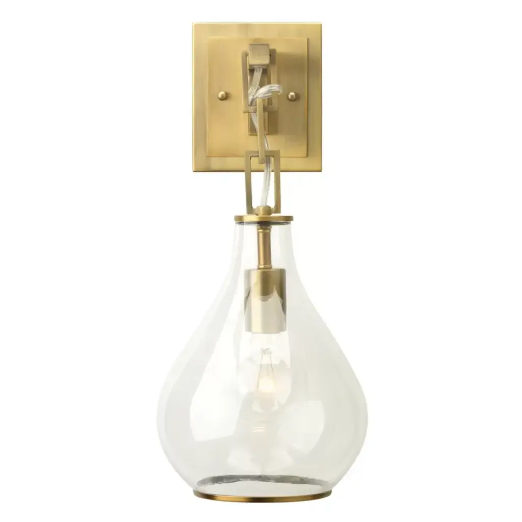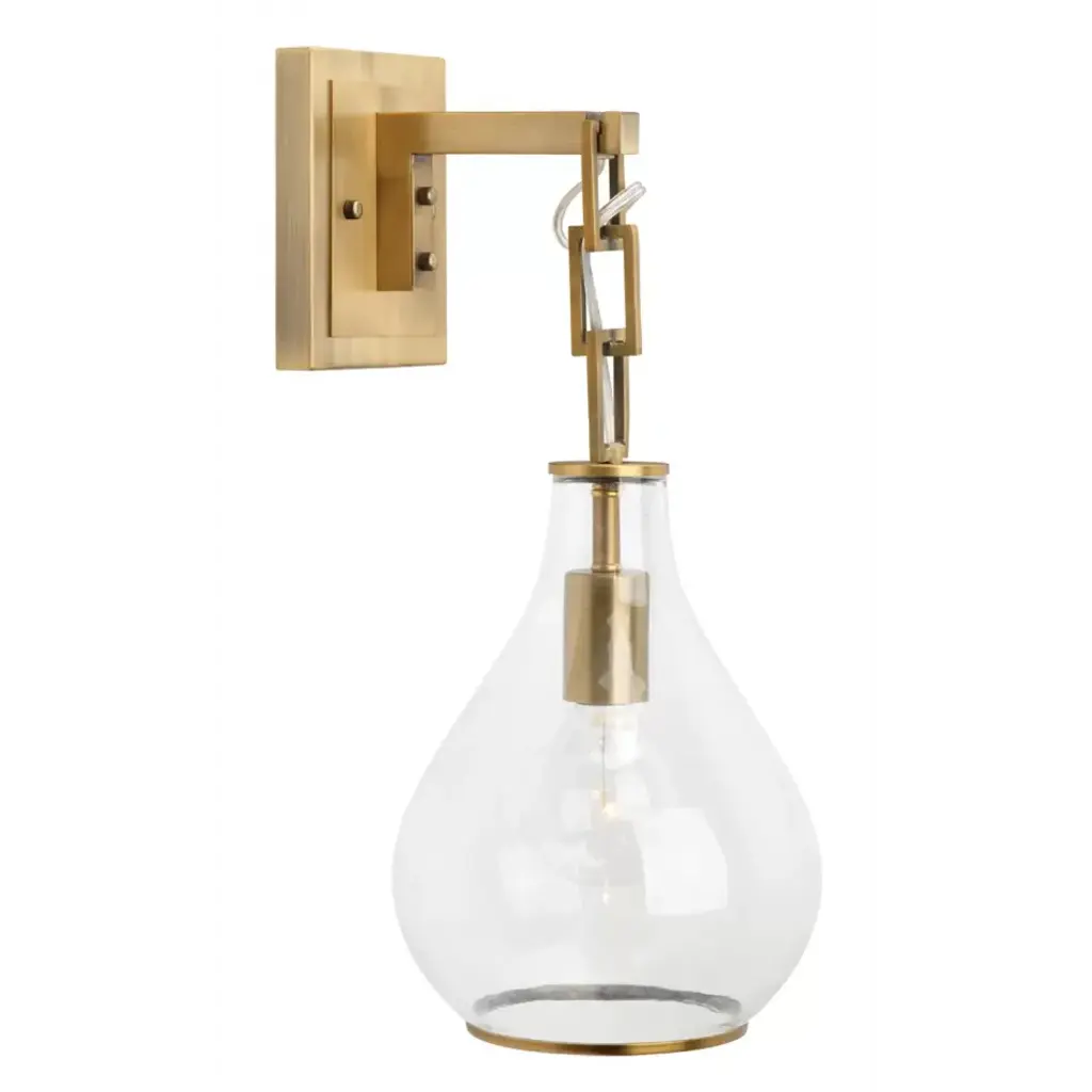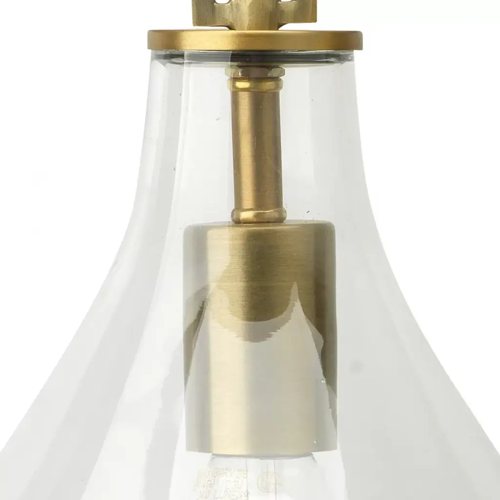 Tear Drop Hanging Wall Sconce, Clear Glass And Antique Brass