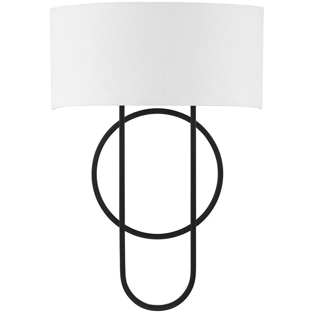With a subtly stylish design featuring overlapping geometric shapes, the Savoy House Tempe 2-light sconce is a great way to boost the illumination and appeal in any room. The slim shapes, finished in Matte Black, contrast beautifully with the crisp white linen shade. Tempe is 17" in height, 12" in width and extends 4.75" from the wall. Uses two candelabra size bulbs of up to 60 watts per bulb. Bulbs not included.