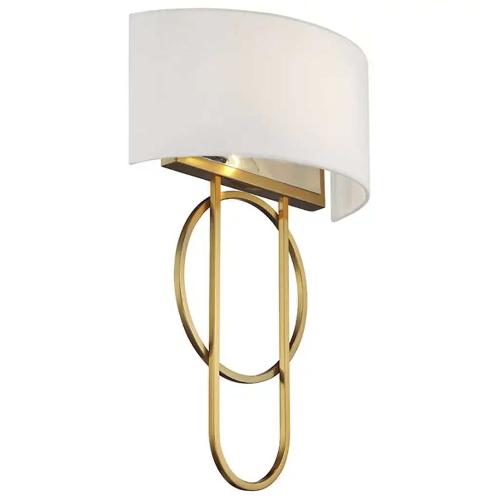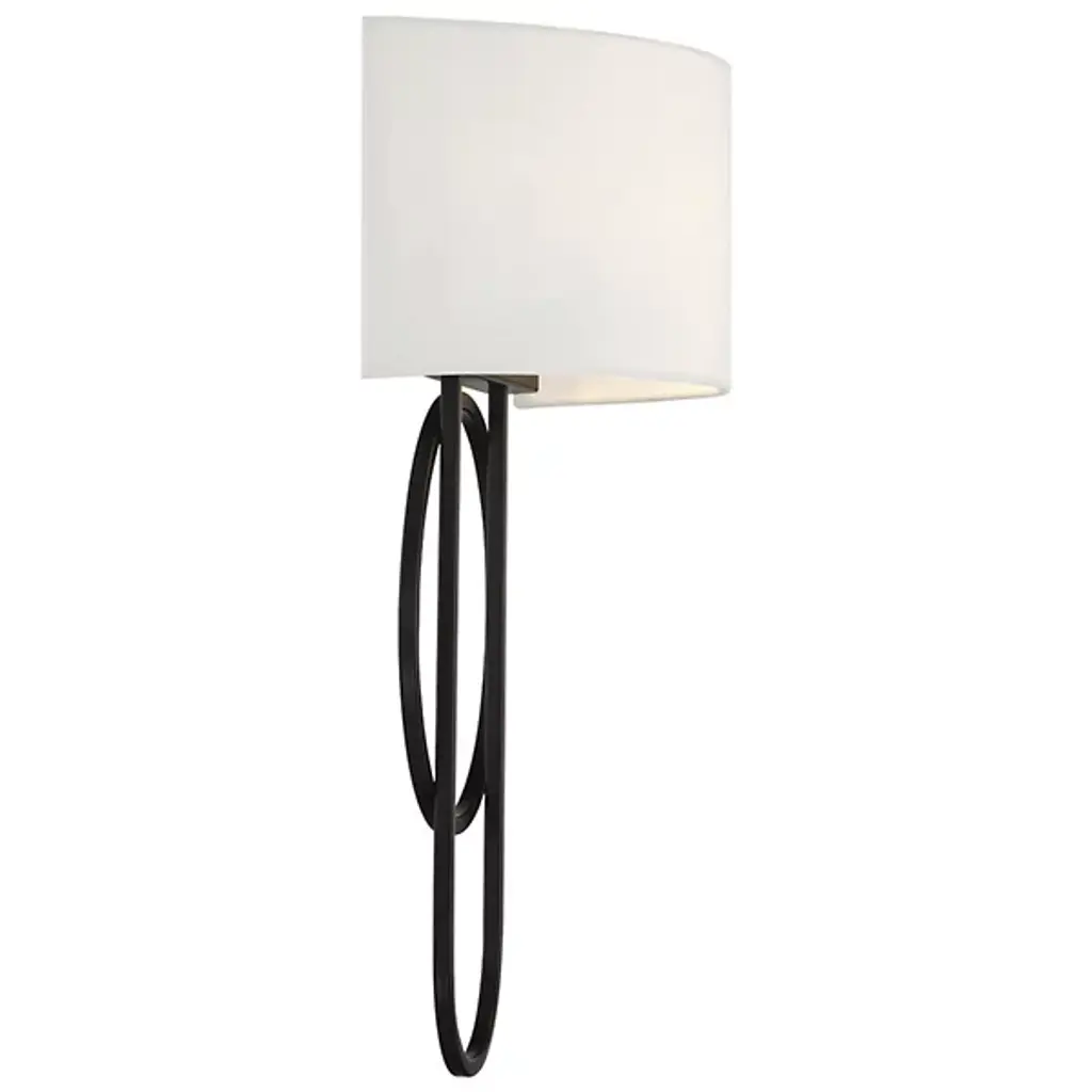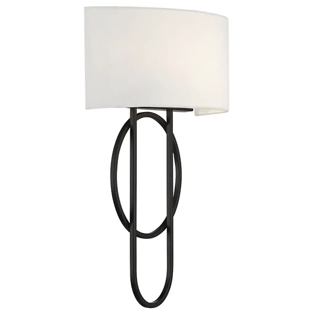 The Tempe Wall Sconce from Savoy House features circular and oblong shapes that intertwine like partners in a celestial waltz, their dance eternally paused against your wall. Draped in a crisp linen shade, this sconce diffuses light like a soft morning mist, gentle yet revealing. More than mere illumination, this luminaire is a silent storyteller. Its modern lines speak of contemporary chic, while the traditional materials nod to timeless elegance.