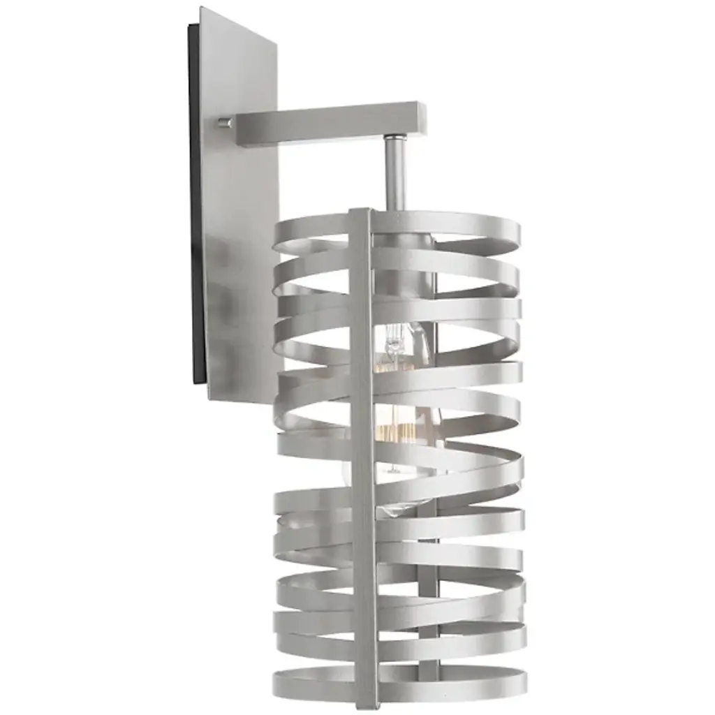 Excite the walls across your home with the animated design of the Tempest Wall Sconce from Hammerton Studio, a piece inspired by the swirling movement of a storm. It delivers chic, contemporary flair through hand-fashioned cuts of robust steel. A single bulb marks the eye of the storm; it suspends in the air with an l-shaped arm and a sleek backplate. An ambient glow awakens the shade’s sculptural arrangement of twirling metal bands. The outpouring light is beautifully diffused for an eye-pleasing presence.