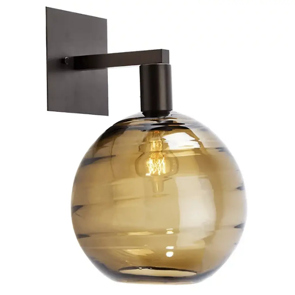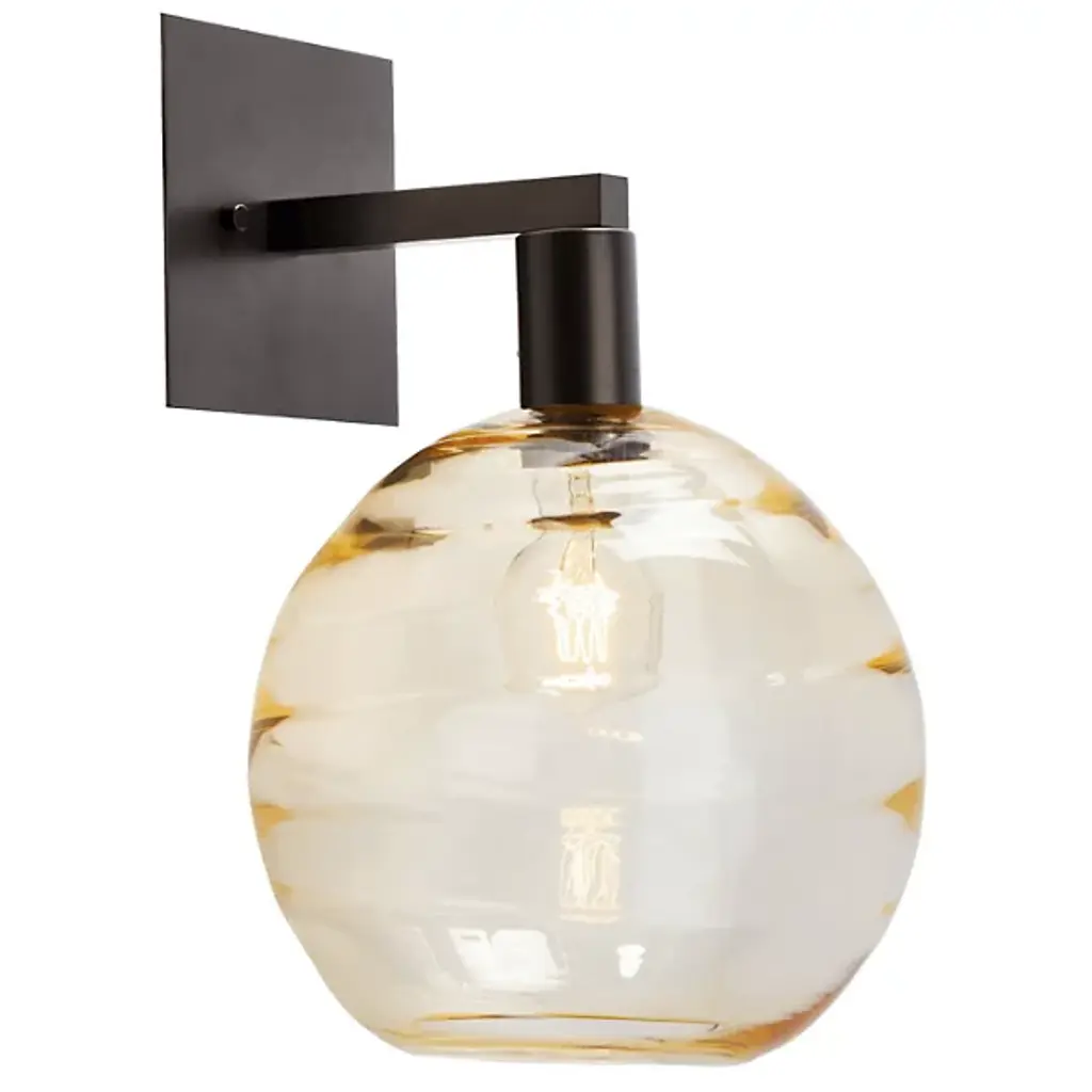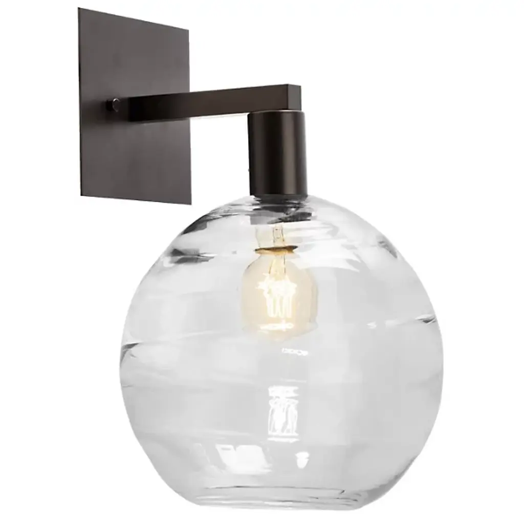 Artisan crafted yet modern. The Terra Wall Sconce by Hammerton Studio features hand blown glass with a swirl texture that uniquely diffuses the illumination. The square backplate contrasts against the glass globe, which showcases a single bulb. Use with a vintage reproduction bulb for the full classic aesthetic.