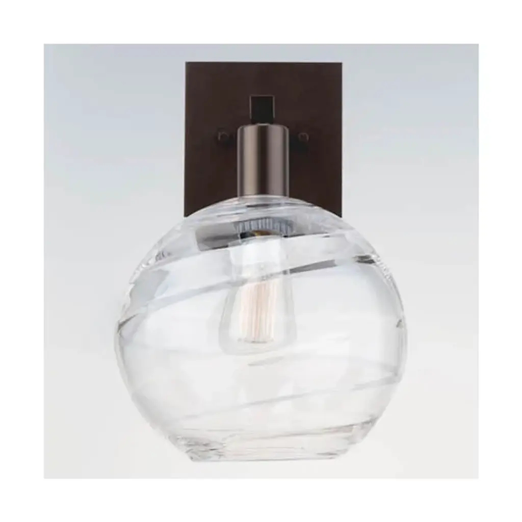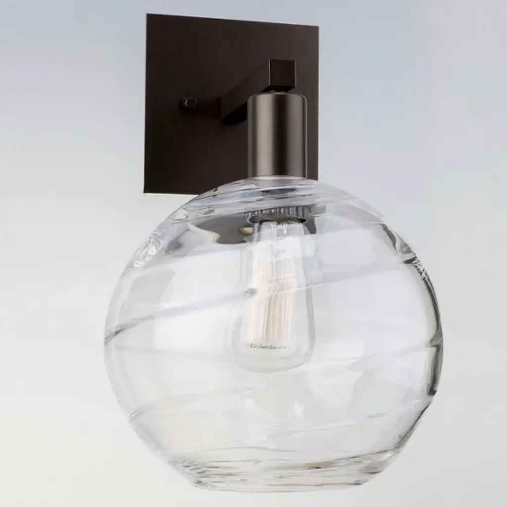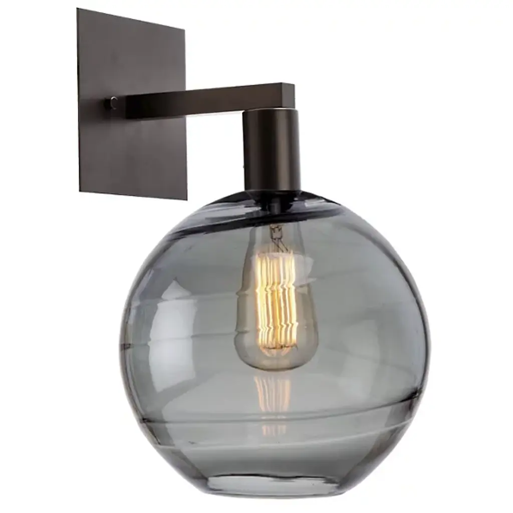 Artisan crafted yet modern. The Terra Wall Sconce by Hammerton Studio features hand blown glass with a swirl texture that uniquely diffuses the illumination. The square backplate contrasts against the glass globe, which showcases a single bulb. Use with a vintage reproduction bulb for the full classic aesthetic.