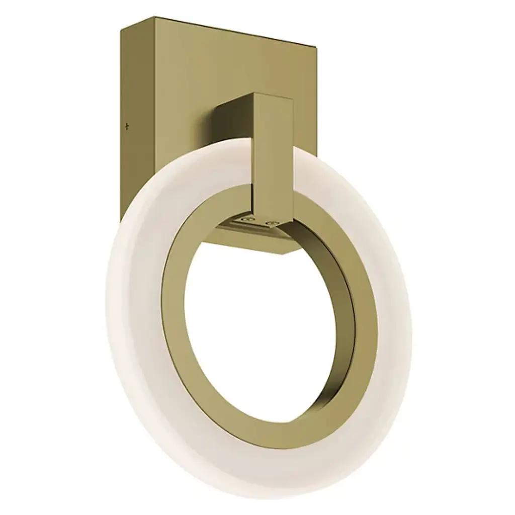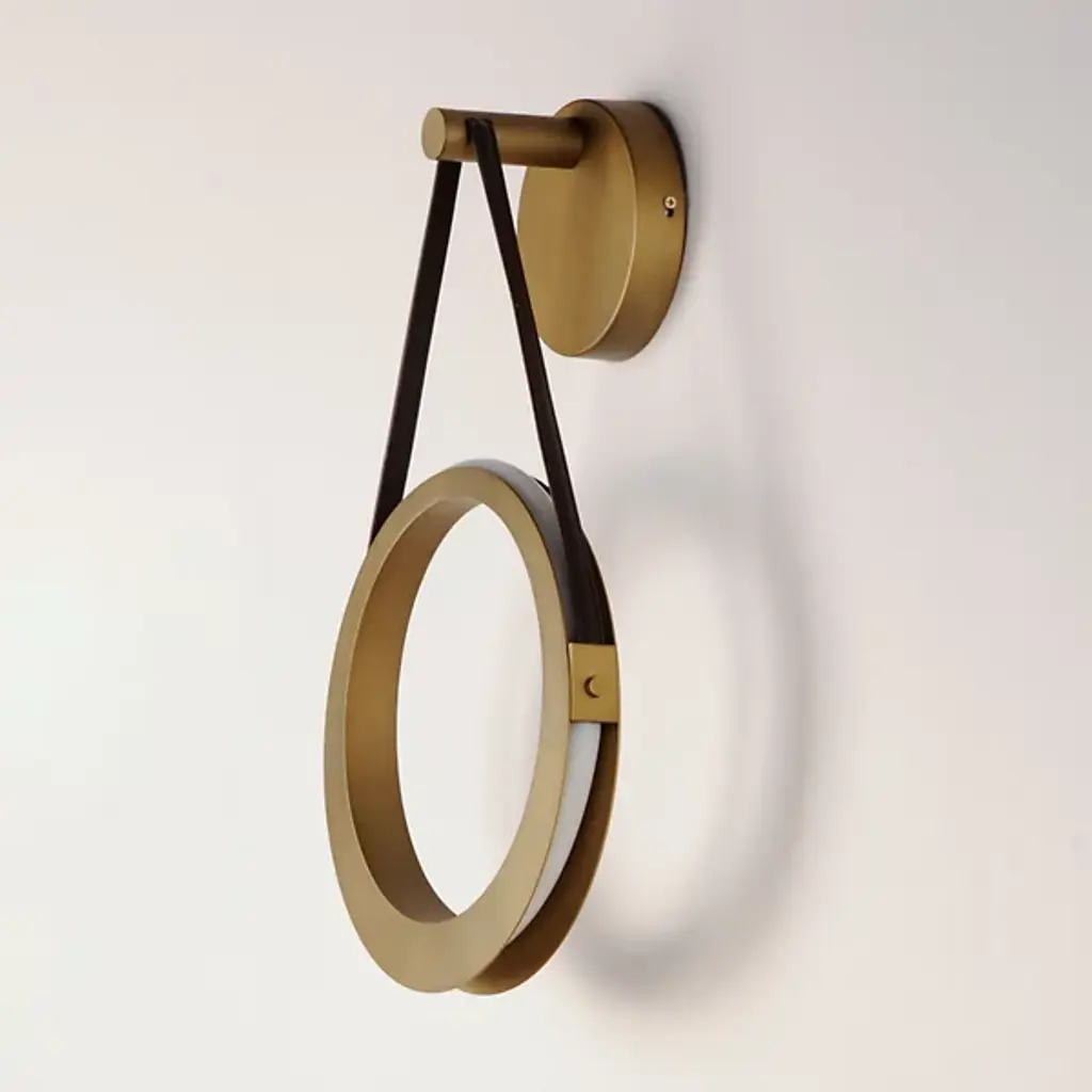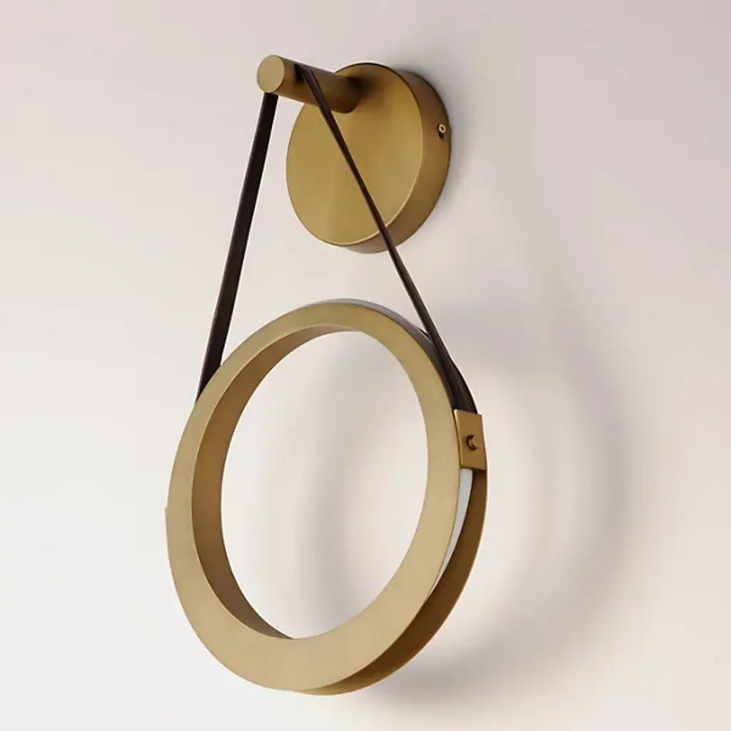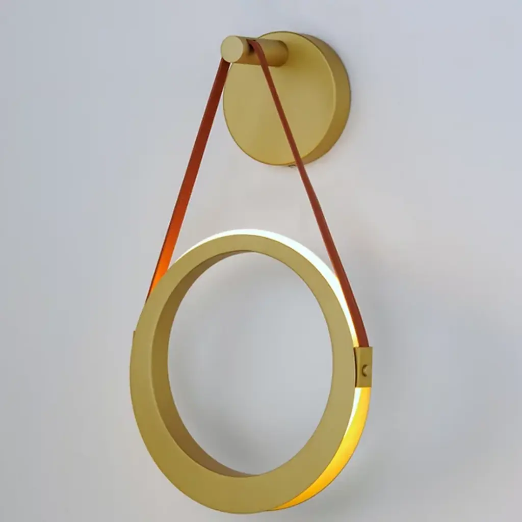 A simple and expressive piece, the Tether LED Wall Sconce from ET2 Lighting brings a warm presentation to the walls of your home. Mounting directly to the wall with a circular backplate, this piece features a single leather strap that drapes over a brief, rounded arm. The strap connects to two sides of the ring-shaped body, allowing it to hang in the space. An integrated LED provides a welcoming, indirect glow that adds ambiance.