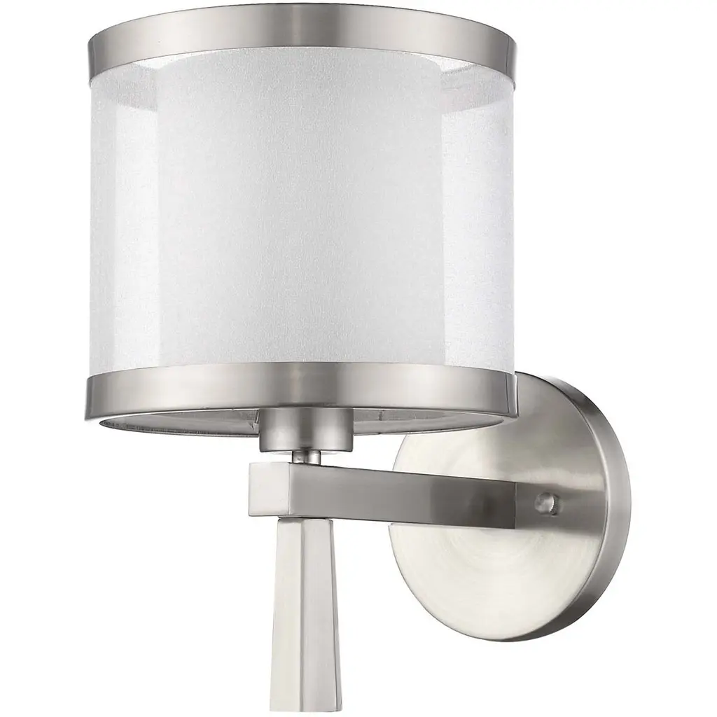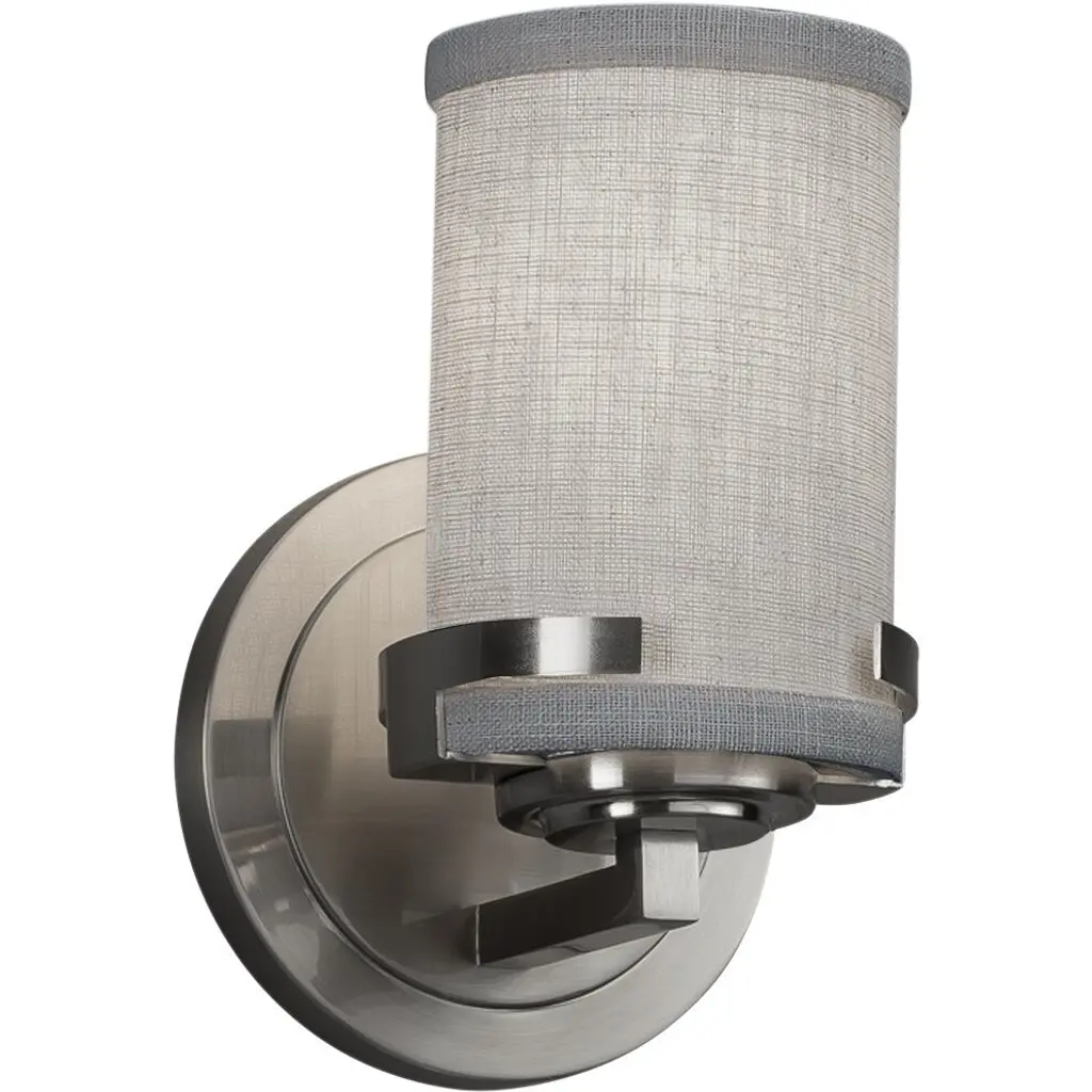 Textile Collection - Atlas Wall Sconce - Cylinder w/ Flat Rim Shade - Polished Chrome - Gray