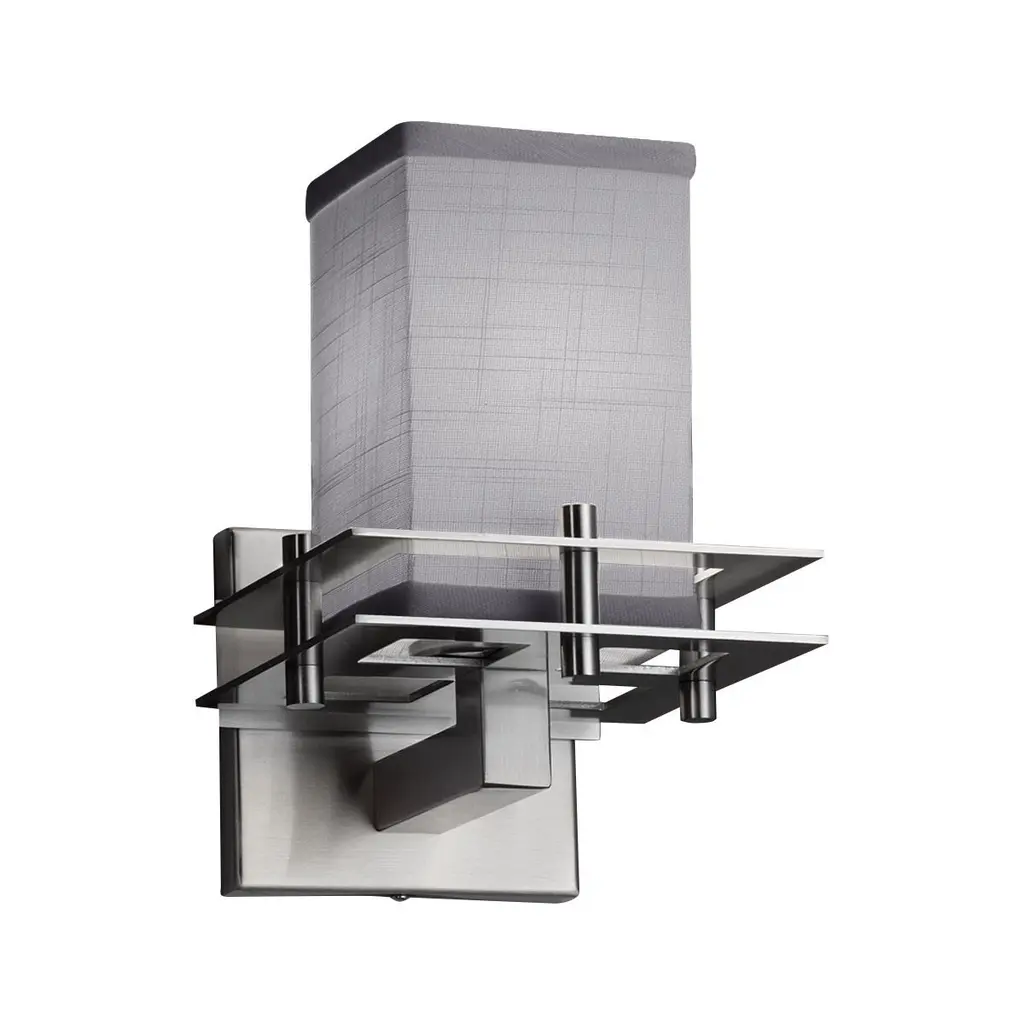 Textile 6.5 Inch Polished Chrome Wall Sconce Wall Light In Cylinder With Flat Rim, Incandescent, Gray