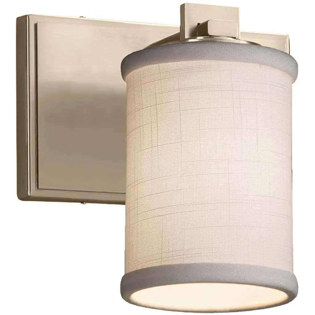Textile Century 1-Light Wall Sconce, Brushed Nickel, White Fabric Shade