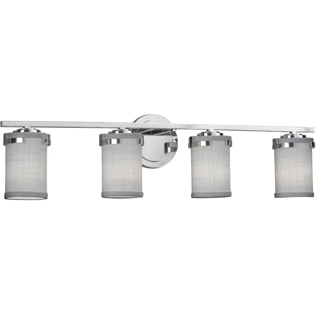 Textile™ Collection - Atlas 4-Light Bath Bar - Cylinder w/ Flat Rim Shade - Polished Chrome - Gray - GU24 LED