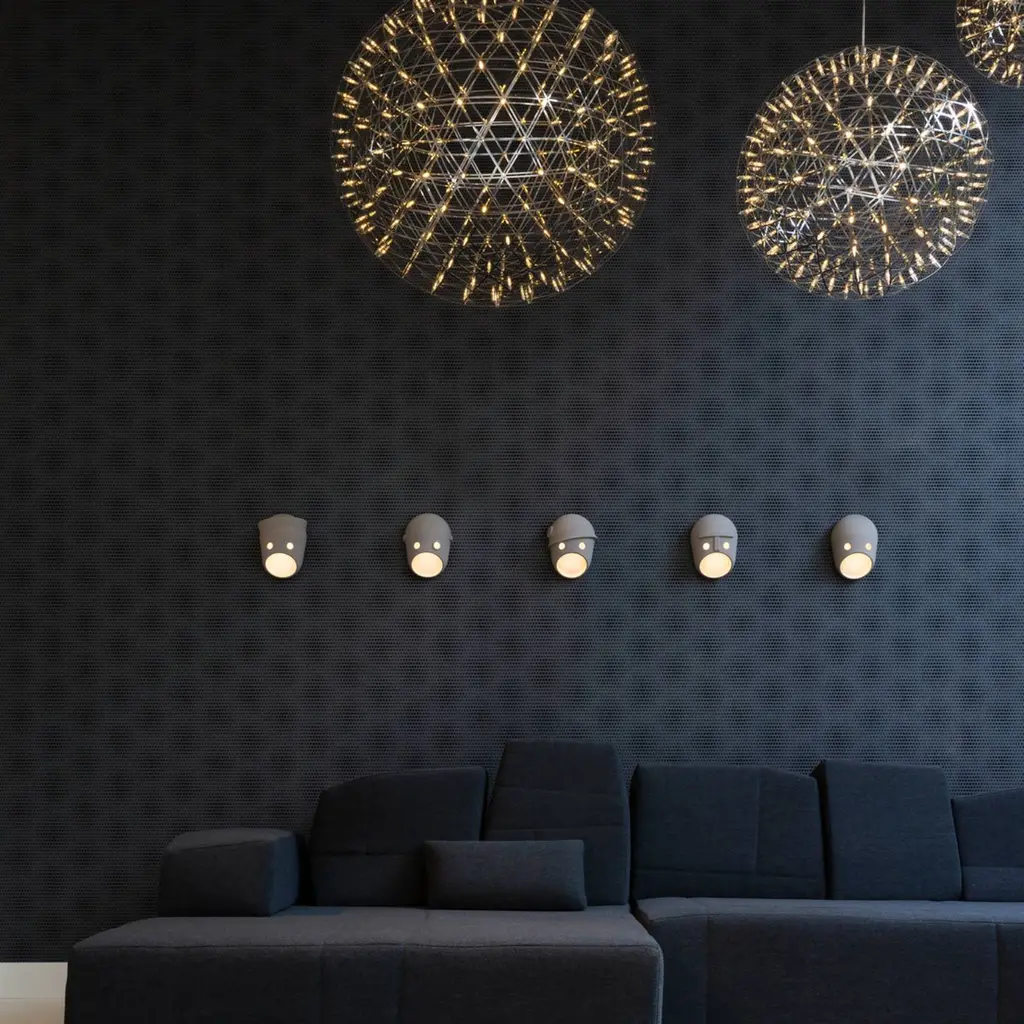Each of these chipper faces brings something to The Party, a series of 5 LED wall lights from Moooi. Design duo Kranen/Gille’s characters have an intriguing story that connects them—the want-to-be aristocrat, the black sheep, the opportunist, the patriot and the evil mastermind. Cast in ceramic with a brass knob, the lamps share the same basic tactile feel, a subtle roughness given by their uniform granular finish.