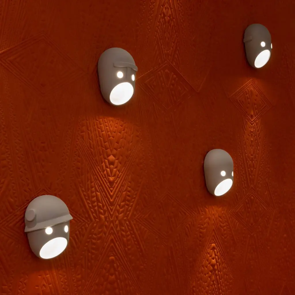 Each of these chipper faces brings something to The Party, a series of 5 LED wall lights from Moooi. Design duo Kranen/Gille’s characters have an intriguing story that connects them—the want-to-be aristocrat, the black sheep, the opportunist, the patriot and the evil mastermind. Cast in ceramic with a brass knob, the lamps share the same basic tactile feel, a subtle roughness given by their uniform granular finish.