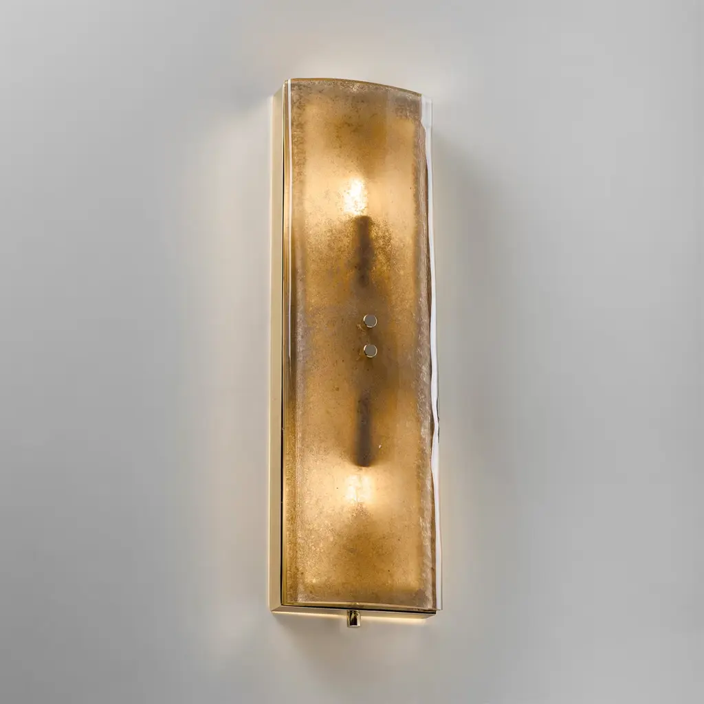 Essential in shape as it is captivating in its naturalistic inspiration, this sconce satisfies both a functional and a decorative need with its two light sources radiating through a gray-hued porcelain body recalling a textured wall. Also offered in variants featuring the addition of golden or silvery plates, it makes for an ideal lighting solution to flank paintings or provide warm ambient light if arranged with twins.