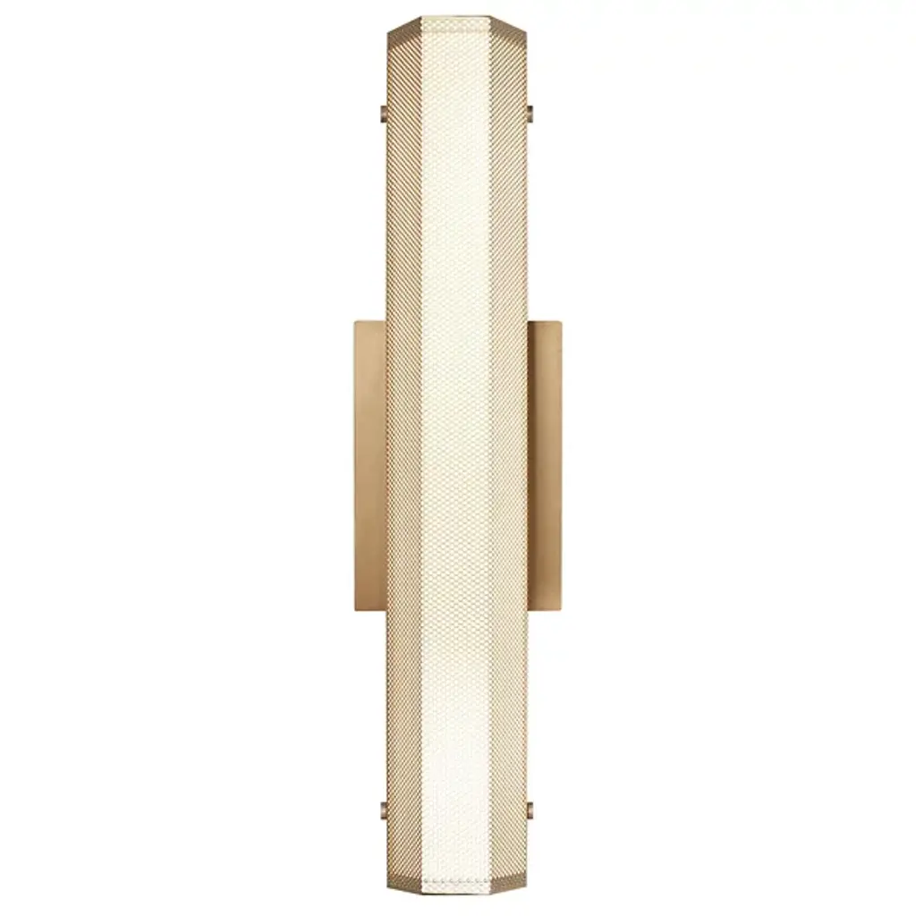 This sophisticated sconce will elegantly accent mirrors or nightstands in contemporary homes, stunning in its textured appearance inspired by bricked walls. Metal components compose the structure, overpowered by the clean-lined white porcelain diffuser that comes to life when the two light sources are turned on and create a sophisticated, bright halo glow from within. A golden variant is also available upon request to the Concierge.