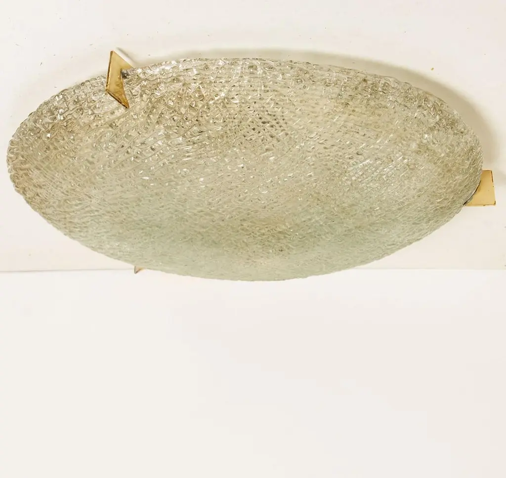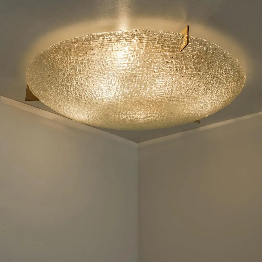 Thick Massive Handmade Glass Brass Flush Mount By Hillebrand, 1965