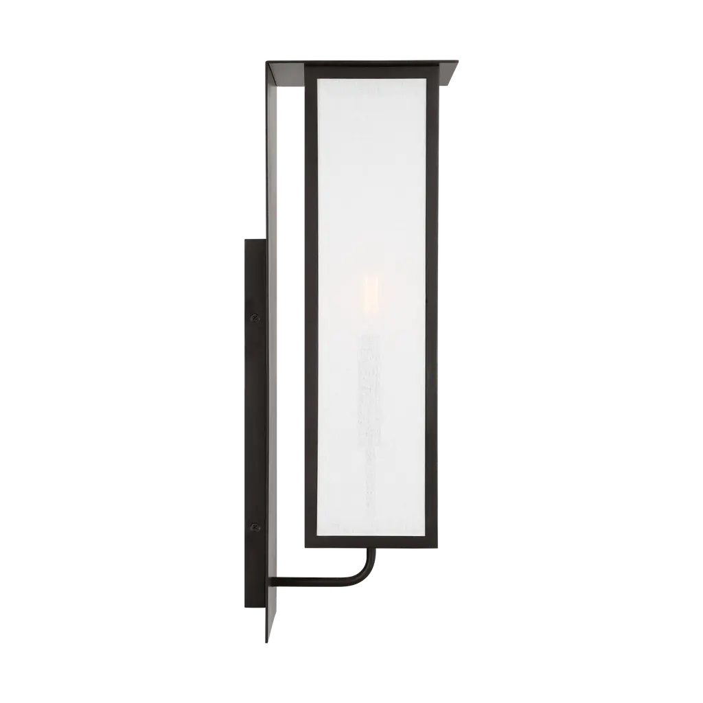 Influenced by the worlds of architecture design, art, and lifestyle, the Thom Filicia Home Collection of lighting features a balanced and inspired combination of architectural, elegant, and thoughtfully designed details with a strong and sophisticated mix of materials. Designed by Thom Filicia, the Dresden collection finds inspiration from the curtain walls of large urban buildings. The addition of a linen shade, rather than glass, softens the light and look of the fixture. The traditional lantern form referenced in this design has also been updated with a modern architectural approach. The Dresden collection is an exciting new interpretation of a centuries-old mainstay form - both strong yet subtle, structured yet relaxed, and bold yet refined. Traditional fixture with modern elements will complement bedrooms, bathrooms, hallways, and foyers Uses (1) 60-watt Torpedo Candelabra light bulb sold separately; LED compatible. Available Finishes: Aged Iron and Coastal Gild . Damp Rated. Finish: Aged Iron Family: Dresden Designer: Thom Filicia Category: Wall Bath Fixture Dimensions: W:6 3/8'' H:21 1/2'' E:7 7/8'' Shade/Glass: white linen fabric shades Lamping: 1 Torpedo Candelabra 60 watt light bulb Voltage: 120 Number of Bulbs: 1 Max Wattage: 60 Bulb Included: No Safety Rating Location: damp