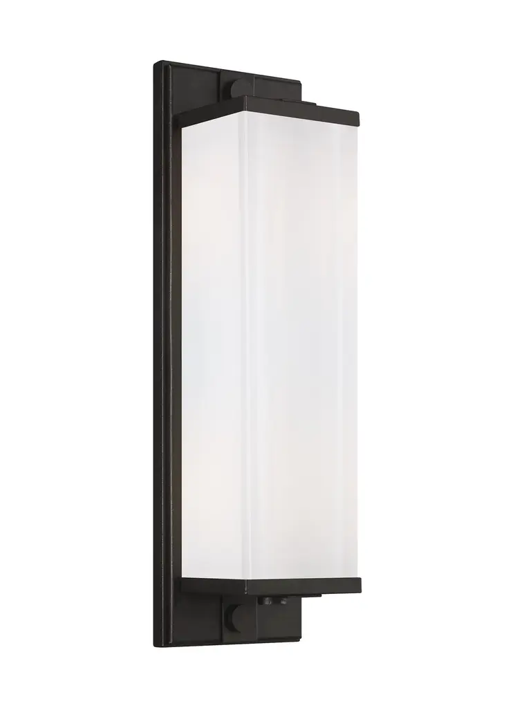 The Logan two light rectangular wall sconce offers a simple, more modern take on the strap and rivet detail of this product family. It features a white pressed glass rectangular diffuser set into a steel frame finished in Aged Iron (will patina over time) or Polished Nickel. May be mounted vertically or horizontally. Available in two sizes, ADA compliant and suitable for damp locations. The Logan family of products from TOB Thomas O'Brien for Generation Lighting mirrors Thomas' masterful design aesthetic of bridging traditional and modern styles. Elegant curves soften structured frames and clean lines, lending aesthetic balance and versatility to Logan lighting fixtures. Designer: Thomas O'Brien Extension: 4 Backplate: DP:5/8'' W:4 3/4'' H:16 1/2'' OB UP:8 1/4'' OB DOWN:8 1/4'' Rectangular Shade/Glass: white pressed glass shade Lamping: 2 T10 Medium 75 watt light bulbs Voltage: 120 Bulb Included: No Safety Rating Location: damp