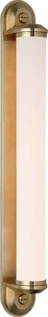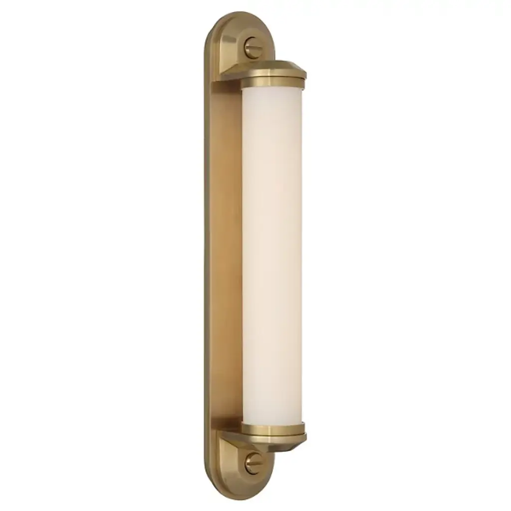 This designer bath sconce features a classic yet modern design, perfect for illuminating your bathroom with an ambient glow. This hardwired fixture is compatible with standard bulbs and is dimmable, allowing you to create the perfect atmosphere.