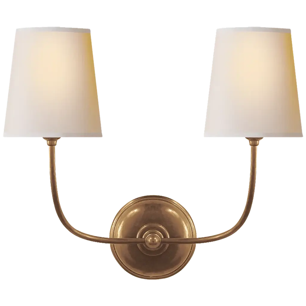 This wall sconce by Thomas O'Brien brings a touch of refined elegance to your space. Its antique brass finish exudes timeless charm, while the dual-light design offers ample illumination for any room. Crafted for versatility, it seamlessly fits into both modern and traditional settings, enhancing your home's ambiance. The hardwired feature ensures a sleek, clutter-free appearance, and its dimmable capability allows you to adjust the lighting to suit your mood.