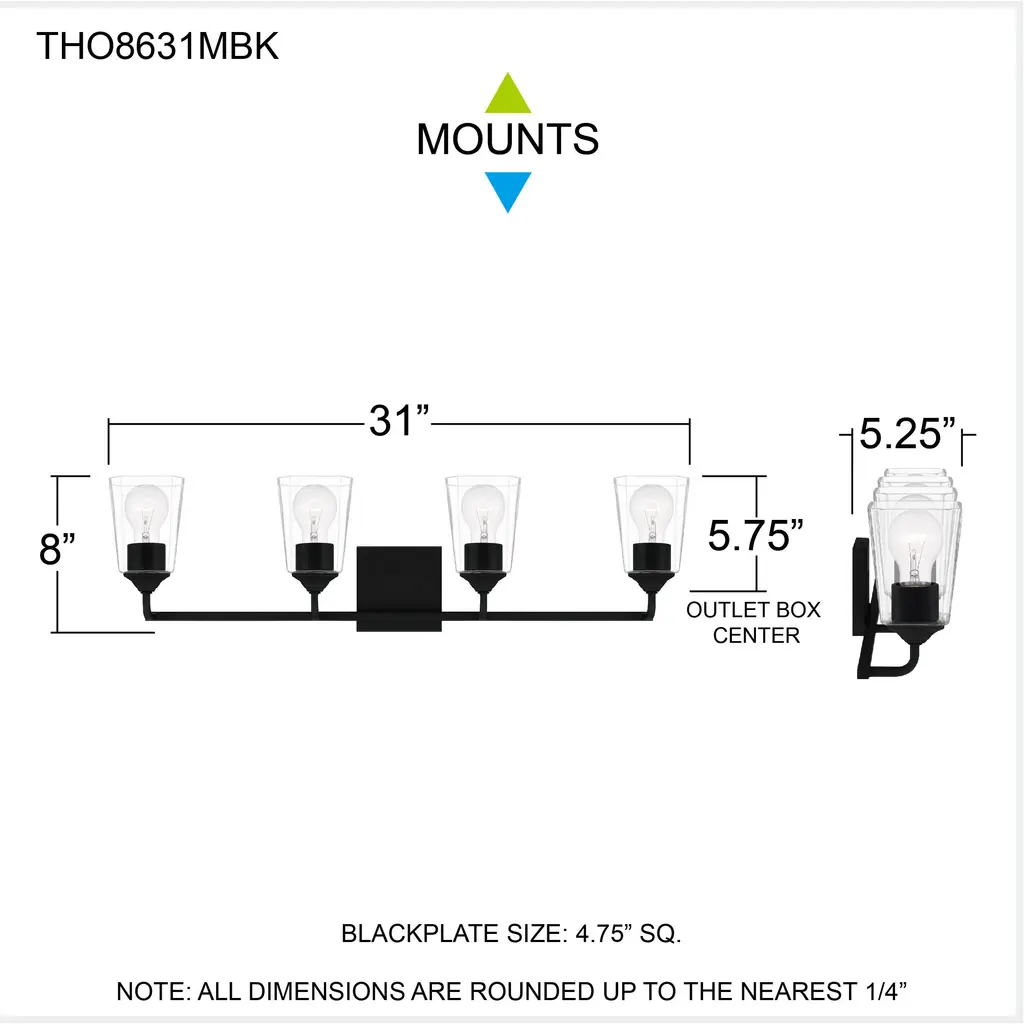 Thoresby 4 Light 31 Inch Matte Black Bath Light Wall Light