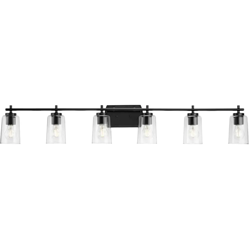 The Thoresby collection is all about choice. These bath lights come in two distinct colorways: a matte black finish with clear glass shades, or an aged brass finish with opal-etched glass. You can position them facing up or down to further tailor the look of a primary or guest bath.