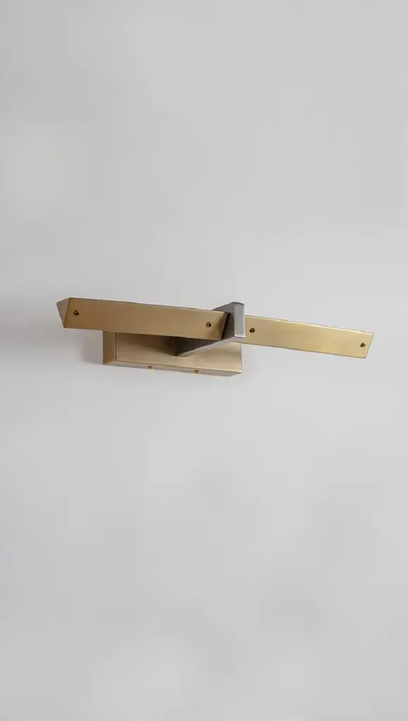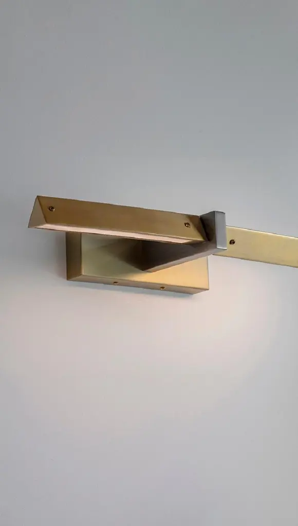 Three Edges Wall Light by Square in CircleDimensions: D19 x W50 x H8 cmMaterials: Brushed brass/ brushed grey metal/ white opaque diffuserOther finishes available.This sleek and modern picture light celebrates functionality of geometry. The rotatable brushed brass triangular shaped light source is connected to the rectangular arm and finished in a brushed grey colour. This picture light will bring a stunning addition to modern interiors.Square in circle is a London-based design studio founded in 2019. The studio explores lighting design in minimal, geometric forms inspired by the Modernist Era. Materials such as marble, metal and glass combine to make each sculptural piece a 'total and complete work of art', as in the manner of Gesamtkunstwerk.All our lamps can be wired according to each country. If sold to the USA it will be wired for the USA for instance.
