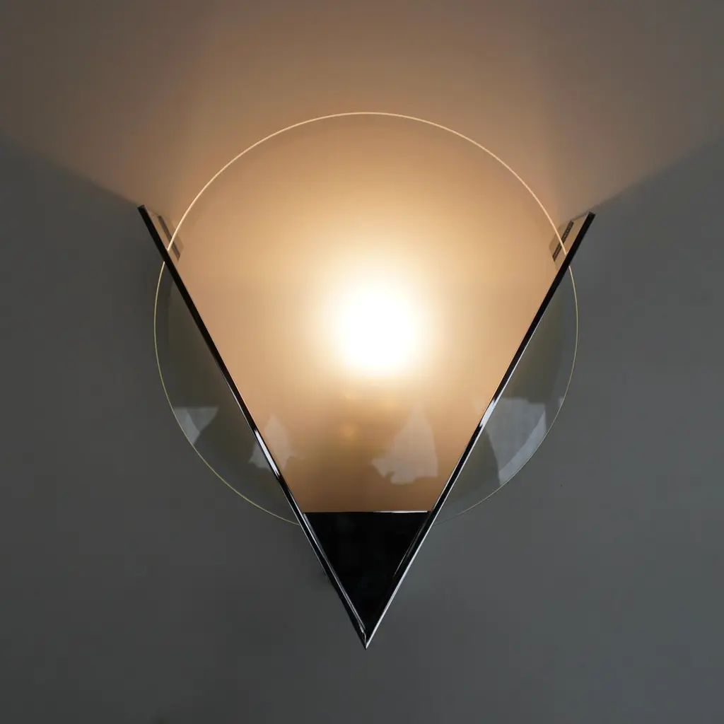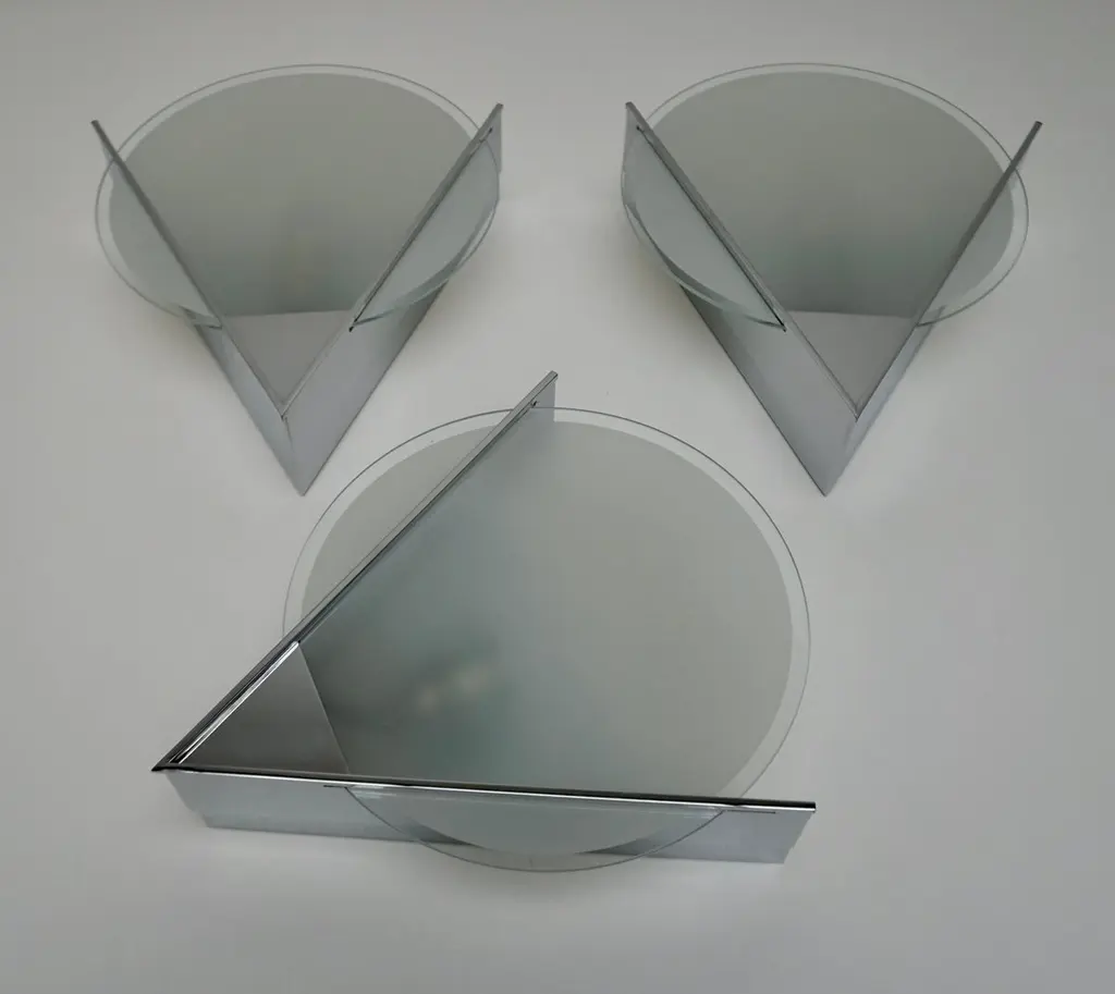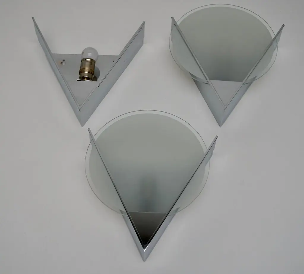 Three French art deco chrome and frosted glass sconces. All original elegant timeless style.