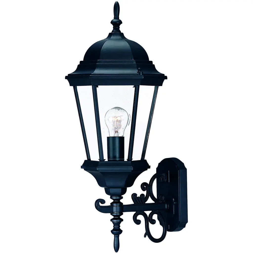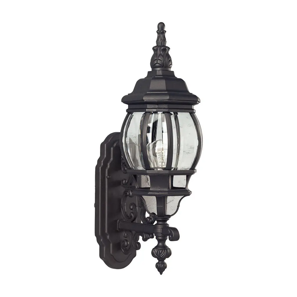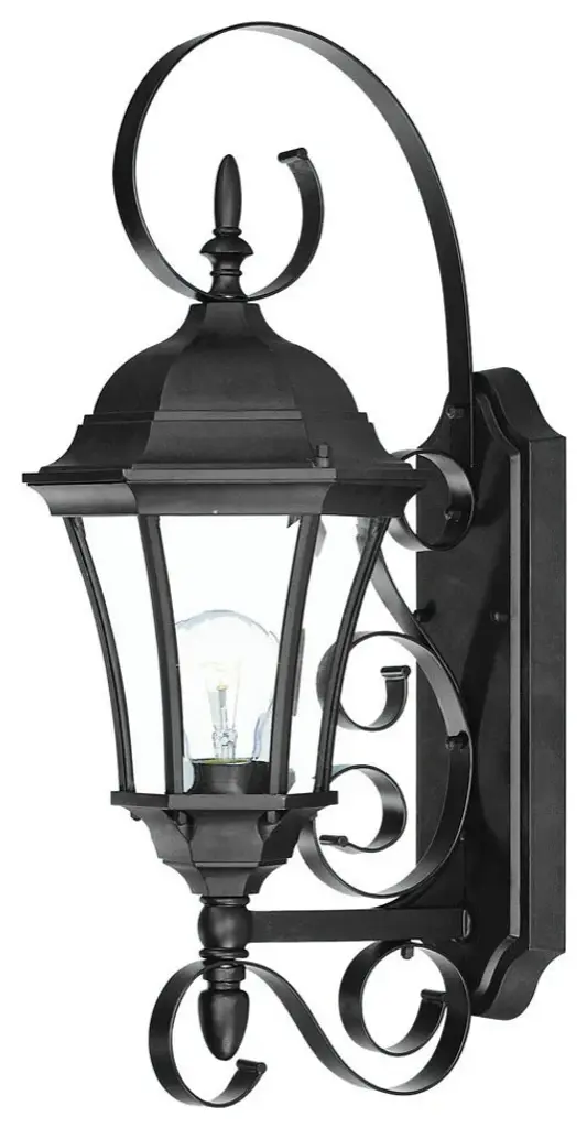 Add a touch of vintage design and more brightness to any outdoor space of your home with this Three Light Matte Black Glass Globe Wall Light. This wall bracket has a narrow medallion shape and is finished to a matte black color. The swing arm has a simple extended rod design with detailing around it coming out from the bracket. The rod is attached to the bottom ornament of the light which is attached to the base frame. The two-step ornament roof goes down into a wide curved frame which tapers inwards towards the bottom. The clear glass inside looks great against the dark brown light frame and will elevate the look of your space easily. There are three bulbs inside this light. 22.75" H x 7.5" W x 11.5" D