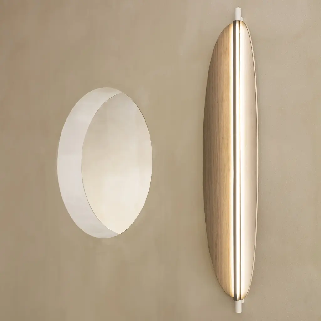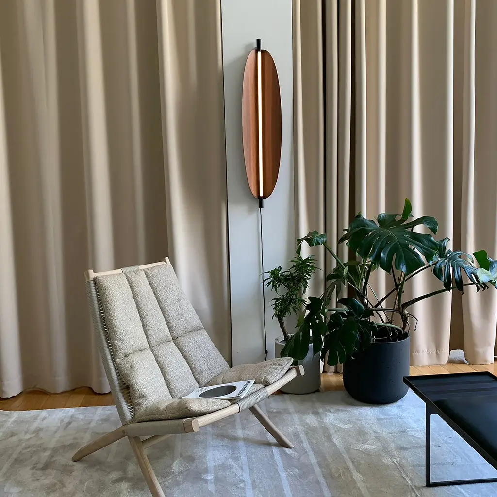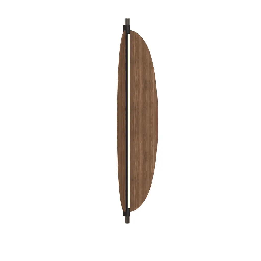 Brighten up any interior with the sleek and shapely Thula LED Wall Sconce from TOOY. Featuring a dimmable LED light on a sleek metal bar, this versatile sconce can be mounted on both walls and ceilings for a unique display. Choose from a shade in walnut, oak, or quilted leather to add an organic touch to your décor. Highlights