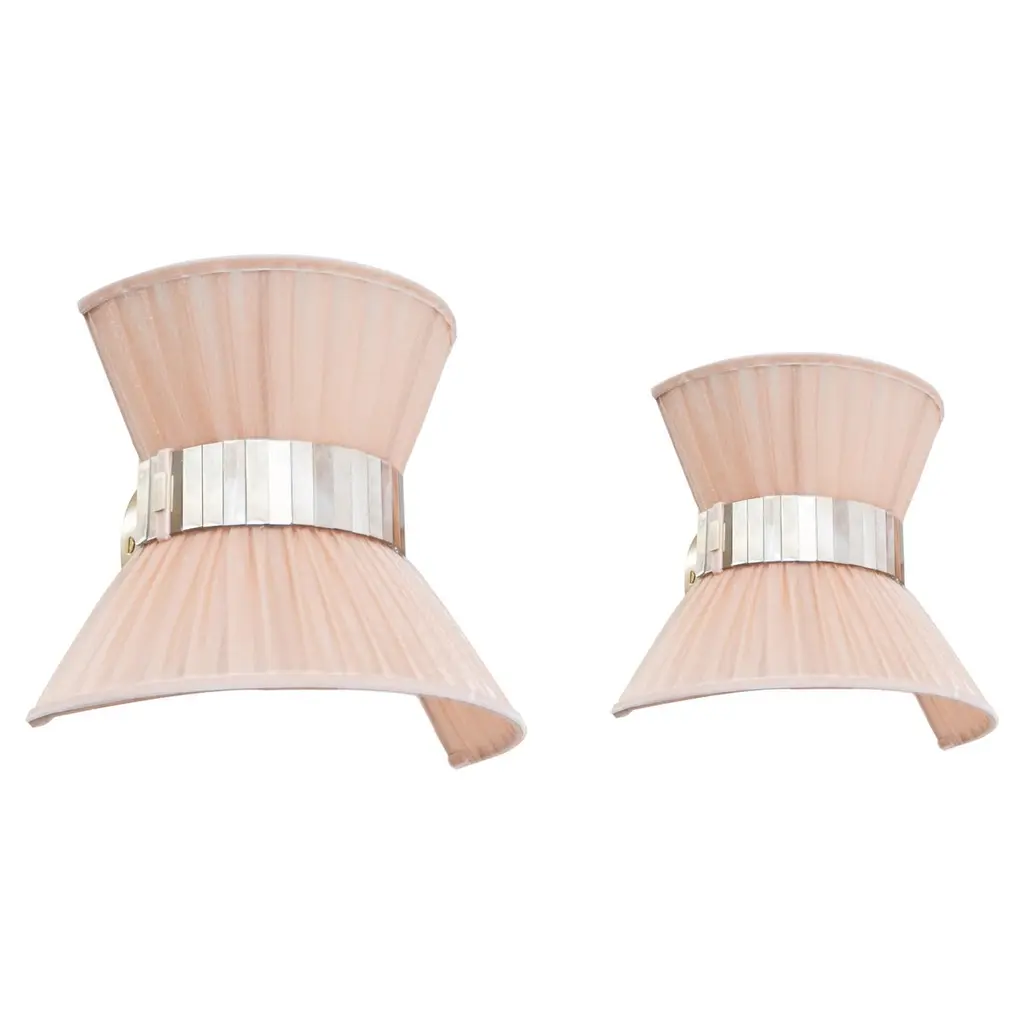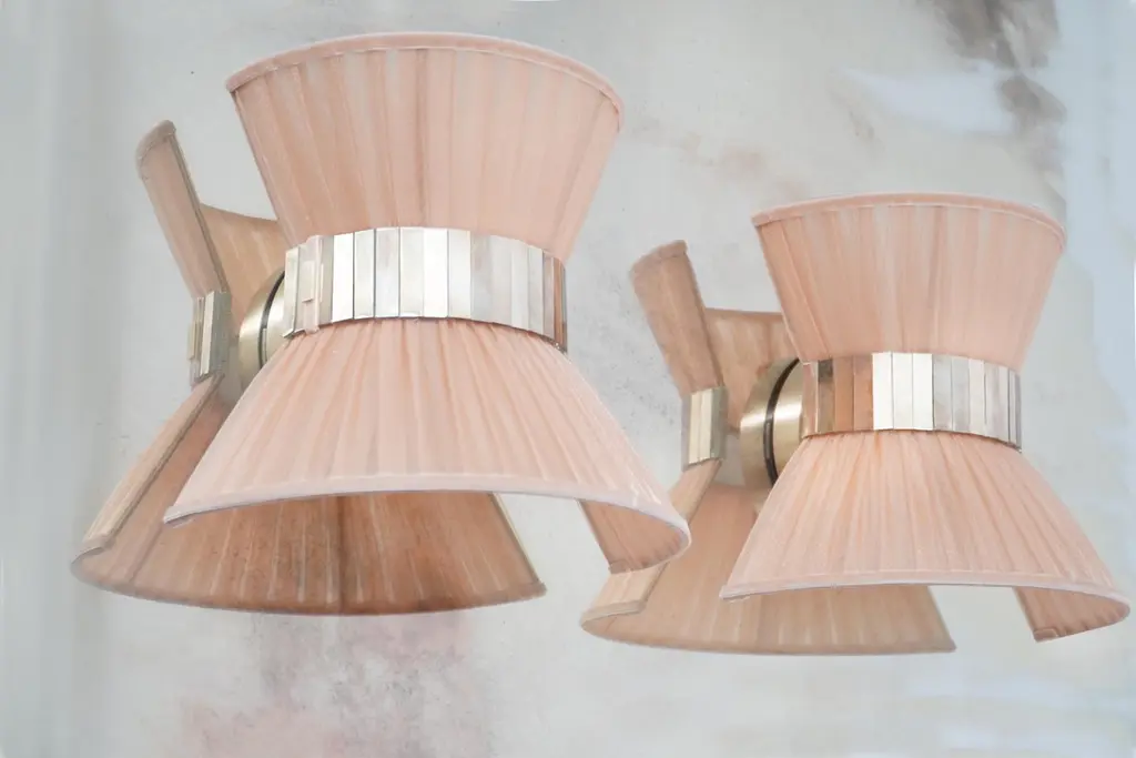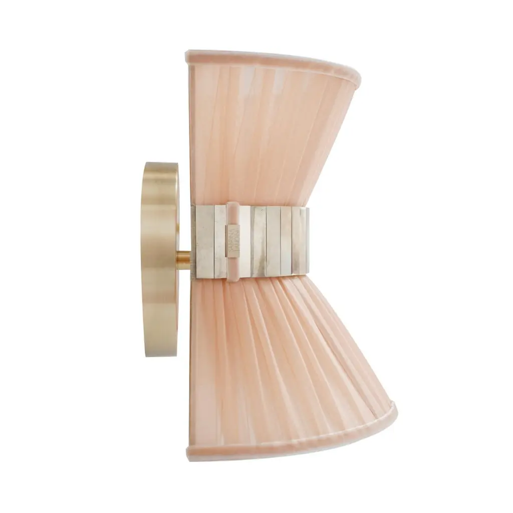 “Tiffany” Wall Lamp Bow Tie 25, Powder Silk, Satin Brass, Silvered Glass