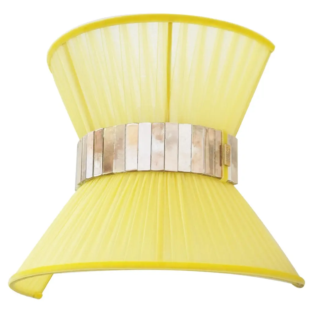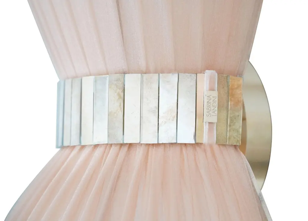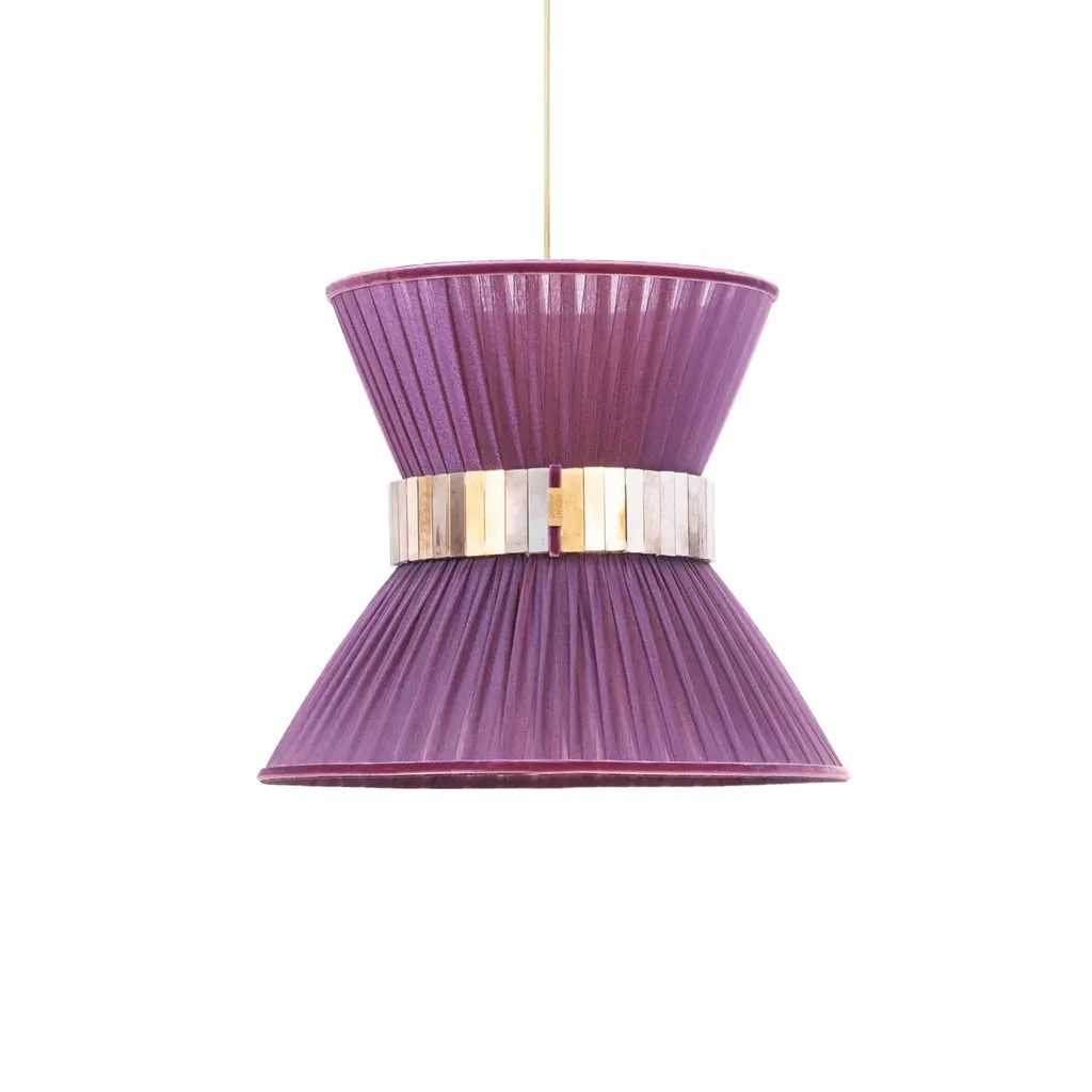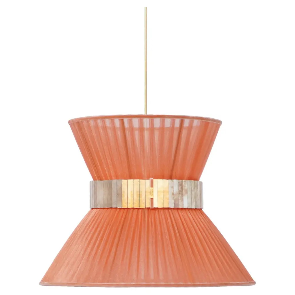 TIFFANY The first one, Audrey inspired the iconicIntroducing Sabrina's breathtaking collection of Tiffany lamps.Year after year Sabrina Landini perpetuates its exceptional expertise, offering much more than a lamp – a touch of originality.Nearly 25 years ago, the first Tiffany lamps were crafted in Sabrina Landini' s workshop, just a stone's throw away from the Milano Navigli. At the House we believe in once-in-a-lifetime Tiffany, the iconic.With its delicate interplay of materials and lines, Tiffany celebrates the art of dazzling and brightening the lives of those you love.The eye-catching glass belt, secretly performed in our Atelier, the variety of silk’ colors and the smooth brass finish, confer uniqueness and natural charme.The perfect balance of allure and sophistication to enrich all kinds of interiors CE certified and Electrified : US, EU, UK, dimmableAvailable in the lampshade diameter : 23, 30, 40, 60, 80 cm