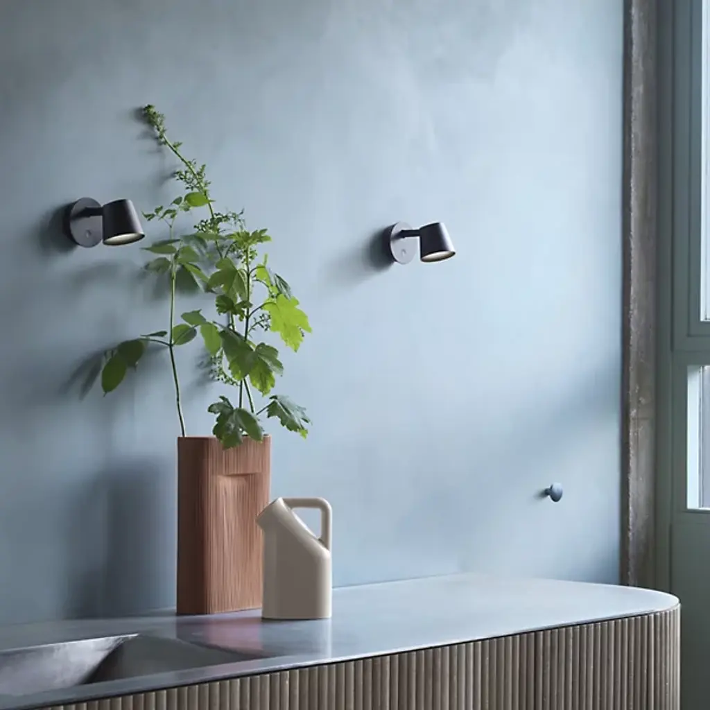 The Tip LED Wall Sconce from Muuto is a refined piece created with a reductive approach synonymous with the Scandinavian tradition. For designer Jens Fager, being straightforward and simple to use is at the forefront of his designs. Fager strips down ideas to their essential purpose while keeping a bit of humor and poetry. The Tip underlines this process in a clean and archetypal look that instantly relays its function. To enhance every form and detail, Fager crafts the piece with a smooth, powder-coated aluminum. Suggesting the name of the sconce, the head subtly “tips” backward with rotating capabilities underlining its versatility. Capped with an opal diffuser, the tapered head lets out a glare-free steam of task or ambient lighting.
