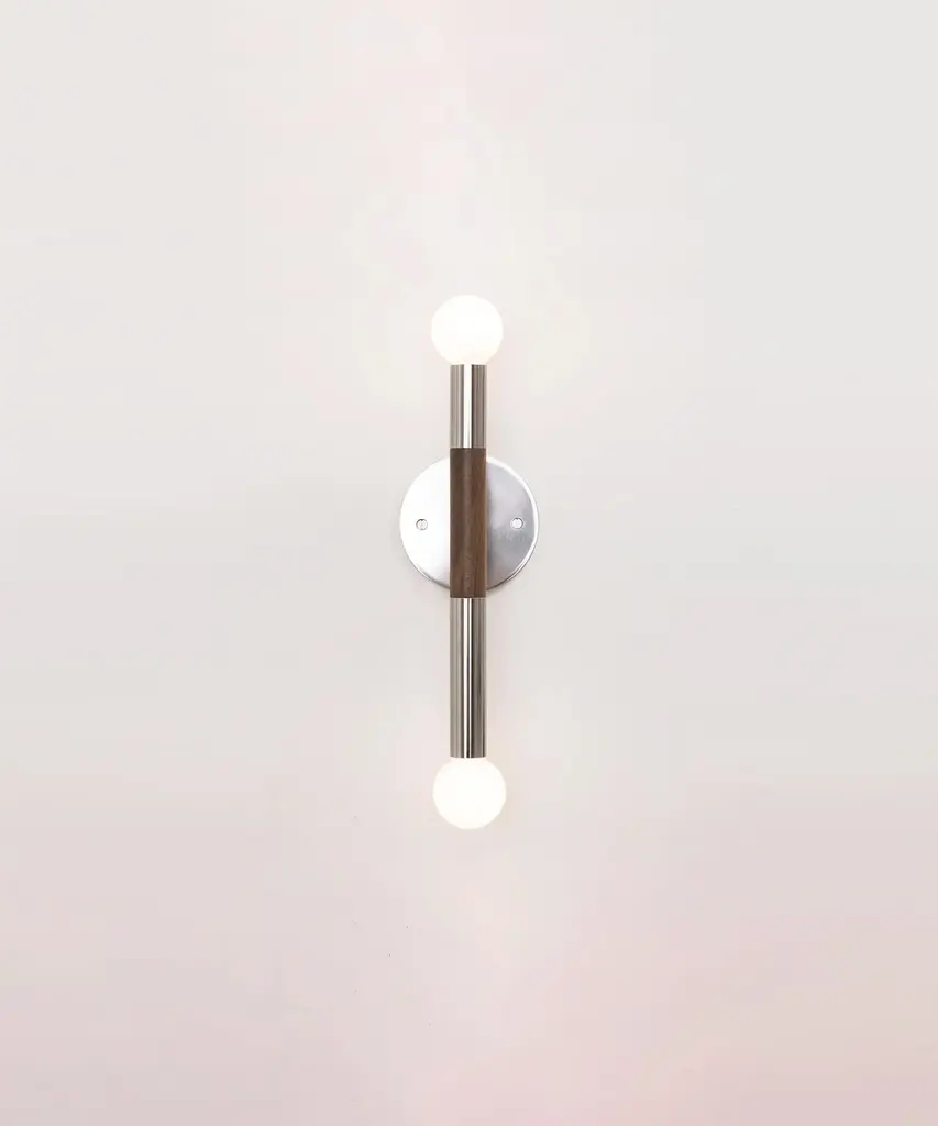 Simple in form, yet varied in mediums, the Toam Series is a modern exercise in material contrast. Pictured in polished chrome and walnut, the collection is made-to-order and is available in a range of finish options. The rod lengths are also easily customizable upon request (please email us at help@trnk-nyc.com with your specifications). Each piece is designed and hand-produced by Coil + Drift, a lauded New York's Catskill Mountains-based design studio known for its vividly three-dimensional and material-forward collections.