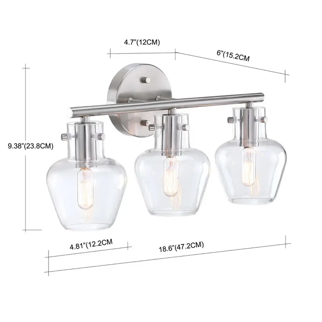 E12 bulb socket: the 3-light vanity light be fitted for 3 E12 bulb base with CFL, led, halogen, incandescent, the wall sconces fully compatible with dimmer switch and dimming bulb(not included).Easy to install: the bathroom light fixtures comes with all mounting hardware and installation guide for the fast and easy installation process, bathroom vanity light design allows to be installed pointing up or down.