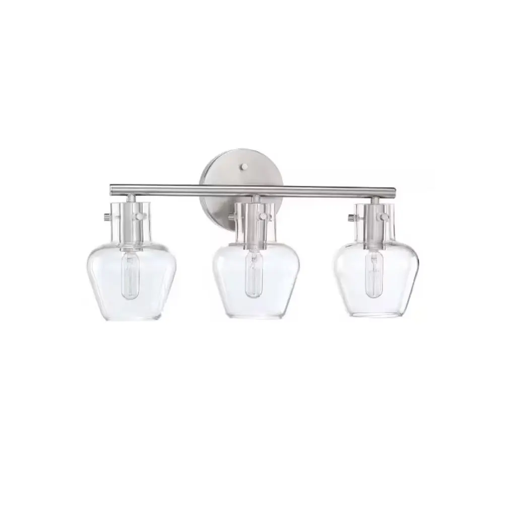 Tobili 19 In. 3 Light Bathroom Light Fixture With Brandy Snifter Clear Glass Shade Including E12 Base, Bulb Not Included