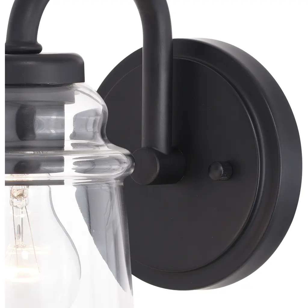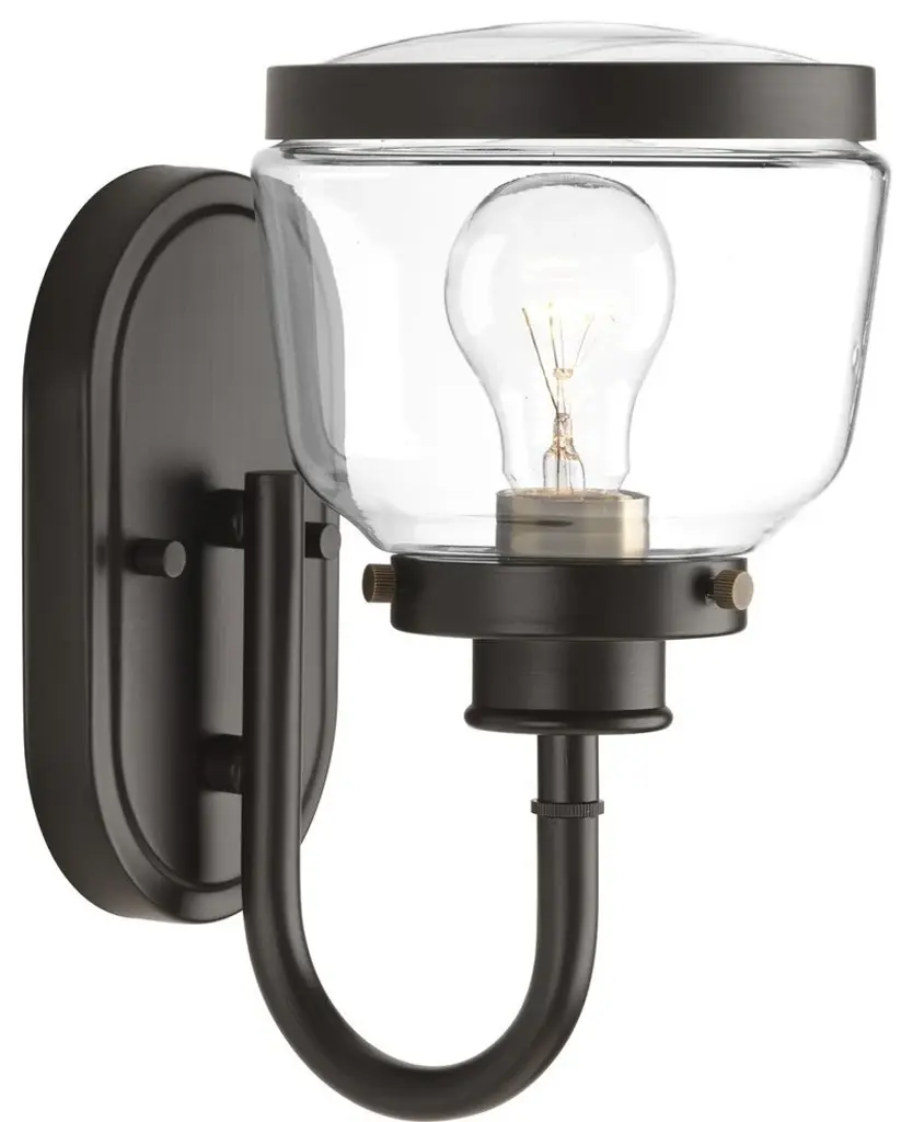 Clean retro lines define this beautiful collection called Toledo. Notes of industrial and farmhouse tradition are defined with the elegance of clear blown glass. Combine that with a vintage Edison style filament bulb to complete the look. Versatile reversible mounting option lets you install this fixture up or down. This wall sconce is ideal for bathrooms, hallways, stairways, and foyers.