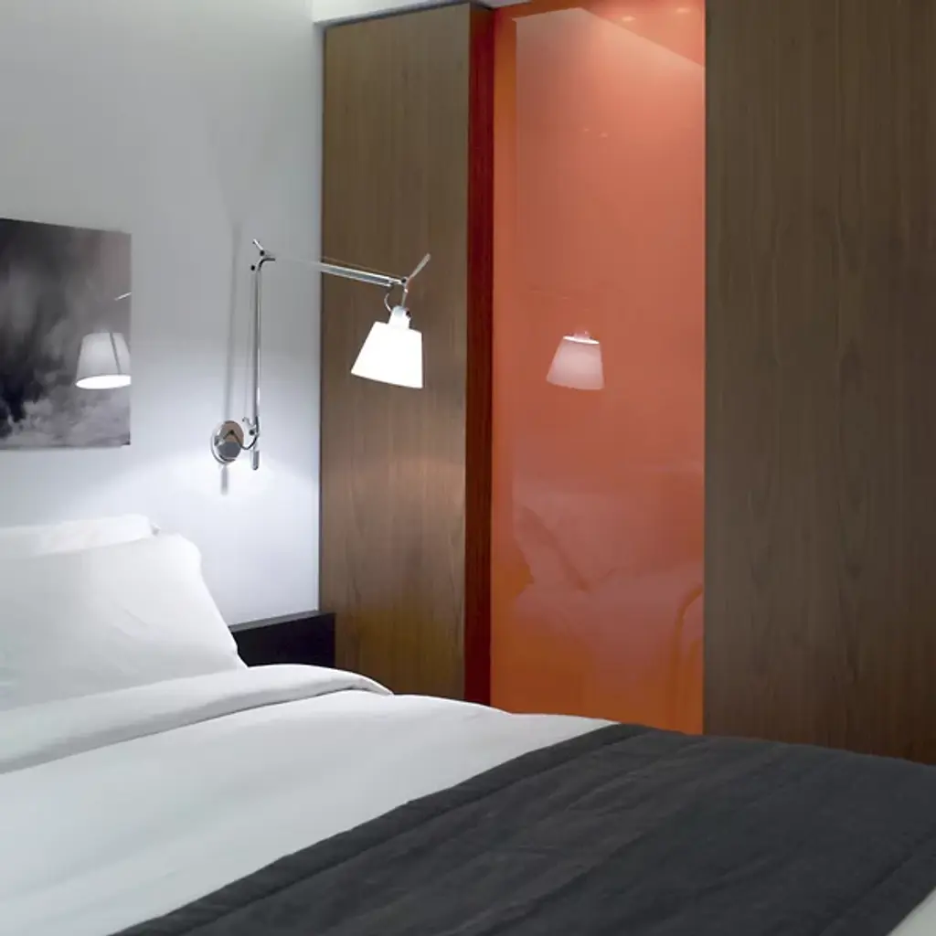 The Tolomeo Mega with Shade Wall Light provides two types of bright illumination: diffused for overall ambience and direct (adjustable) downlight to aid in the accomplishment of reading and other tasks. The Tolomeo Mega Wall Light was designed by Michele De Lucchi and Giancarlo Fassina in 2003. The original Tolomeo design received the Compasso d'Oro award in 1989.